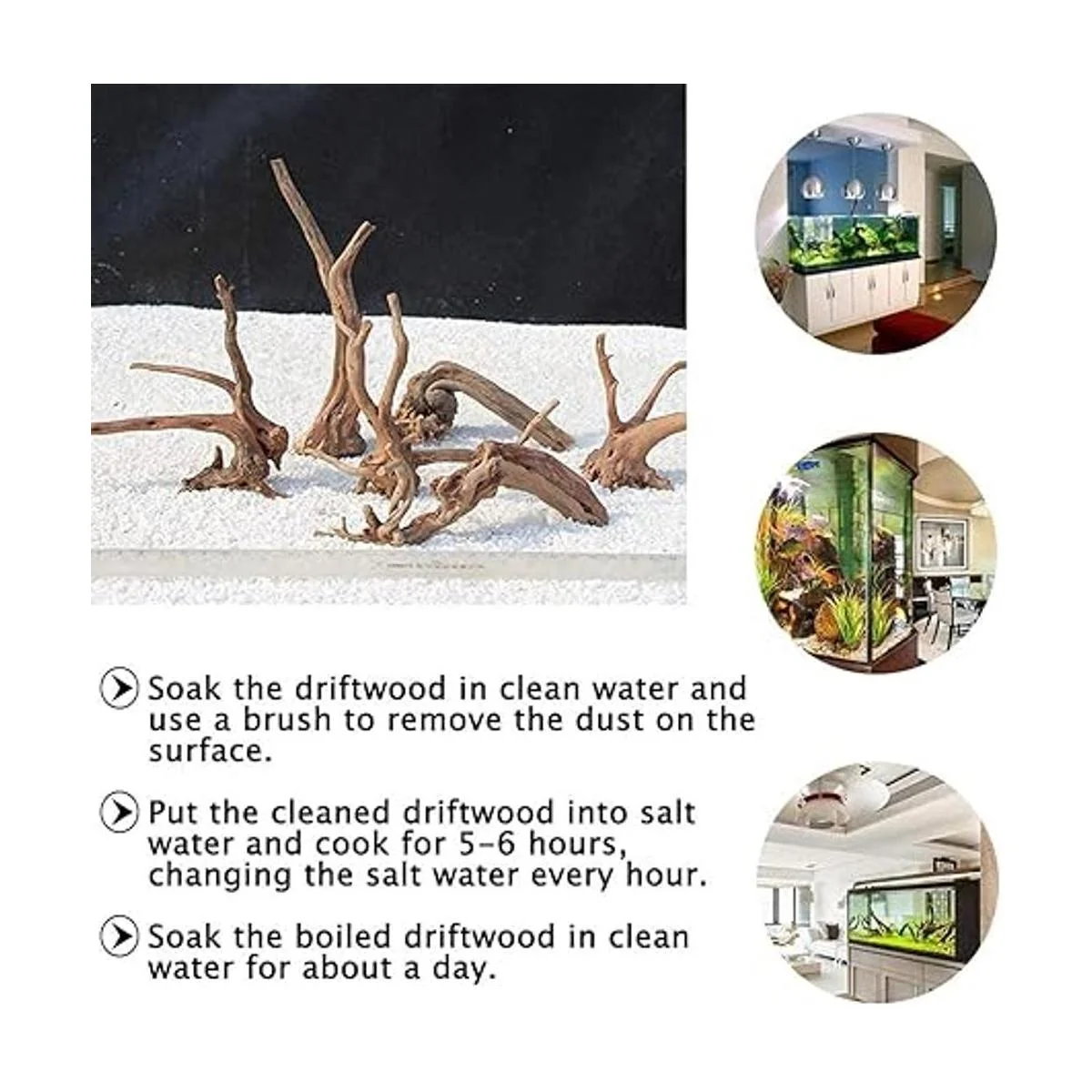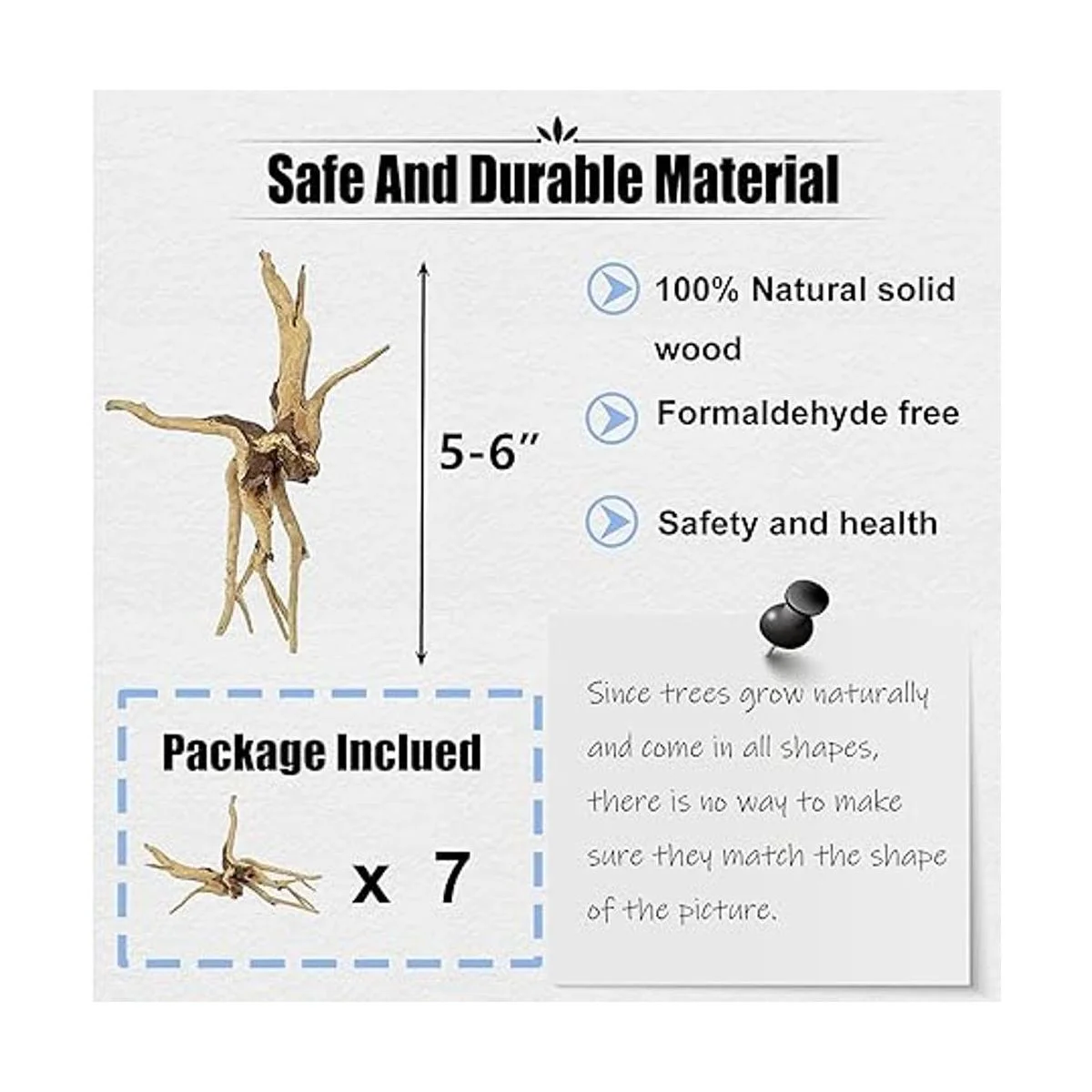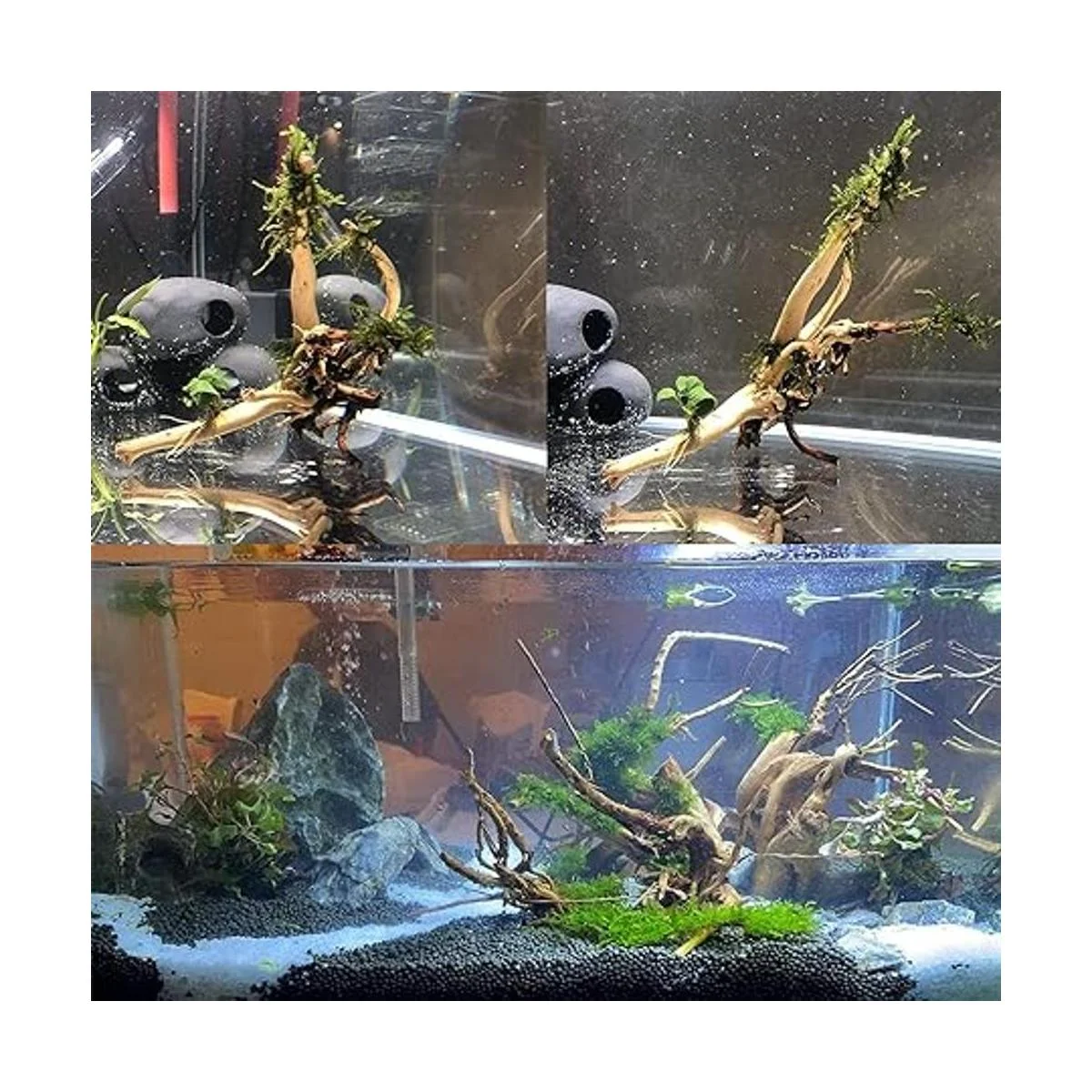 Multifunción: las formas únicas y la madera hundida resistente son ideales para decorar hábitats de reptiles, atados con musgo para un árbol de musgo en una pecera, y diseñados para jardinería en el hogar. Los peces más grandes y los cangrejos ermitaños a veces mastican madera flotante o comen microbios largos. A diferencia de las plantas vivas, la decoración falsa de bajo mantenimiento no requiere oxígeno ni fertilizante y es muy fácil de limpiar.