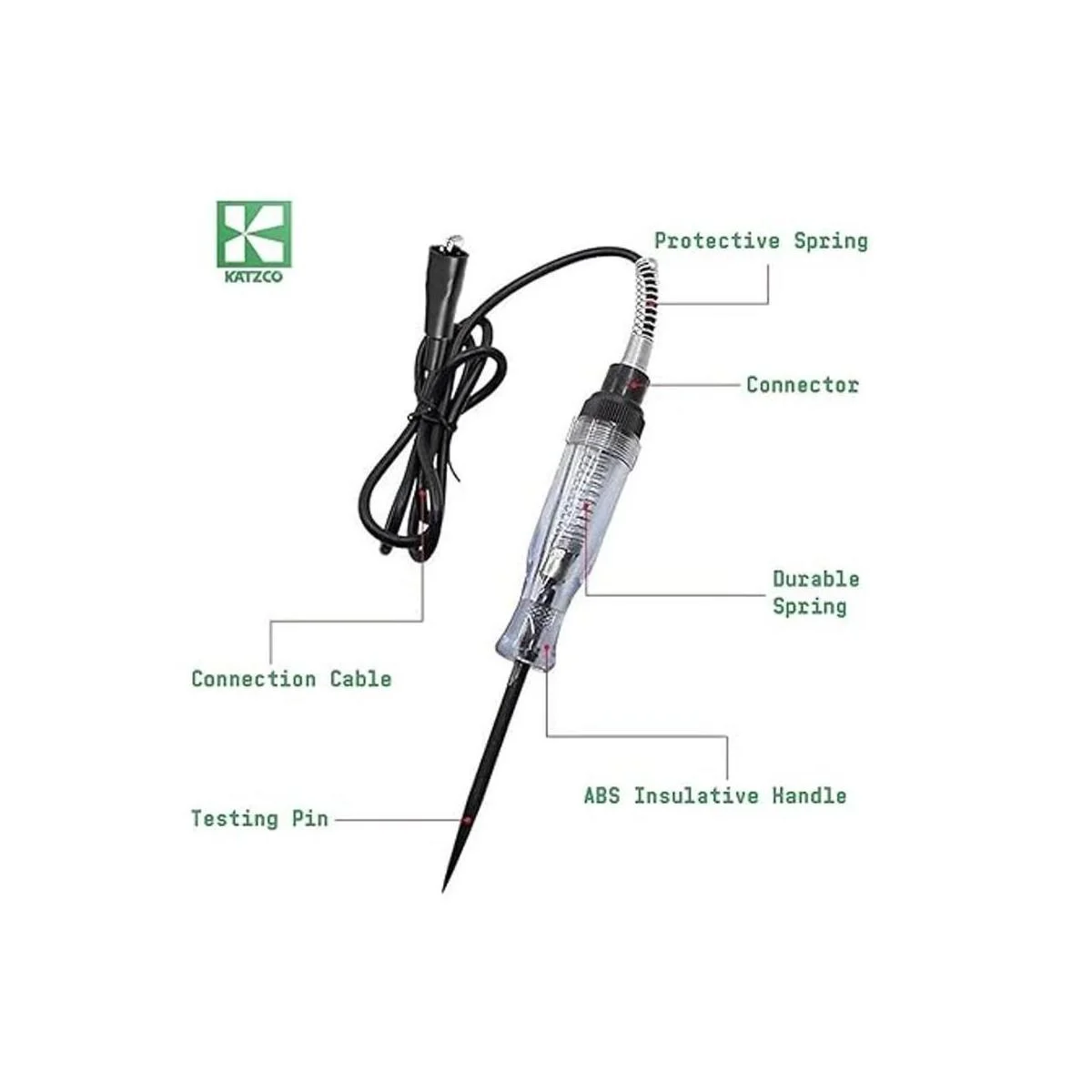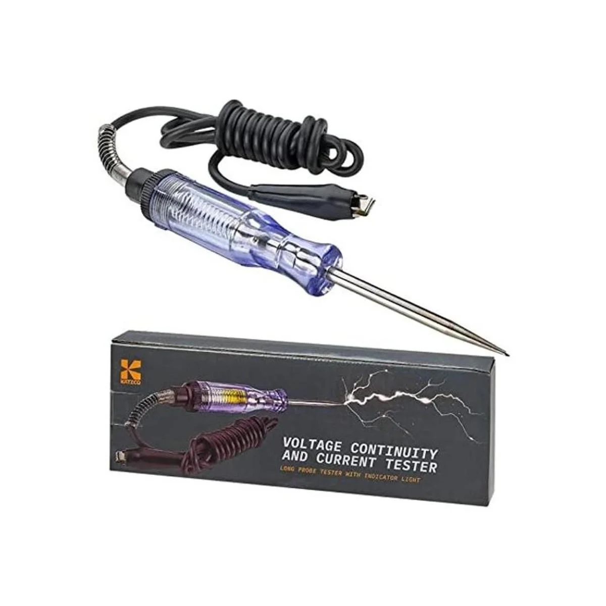 Katzco Probador de continuidad de voltaje y corriente 612 V CC Circuito de 24 V CA Resistente Probador de sonda larga con luz indicadora Cable de 54 pulgadas para sistemas de baja tensión, coches, cables vivos, fusibles