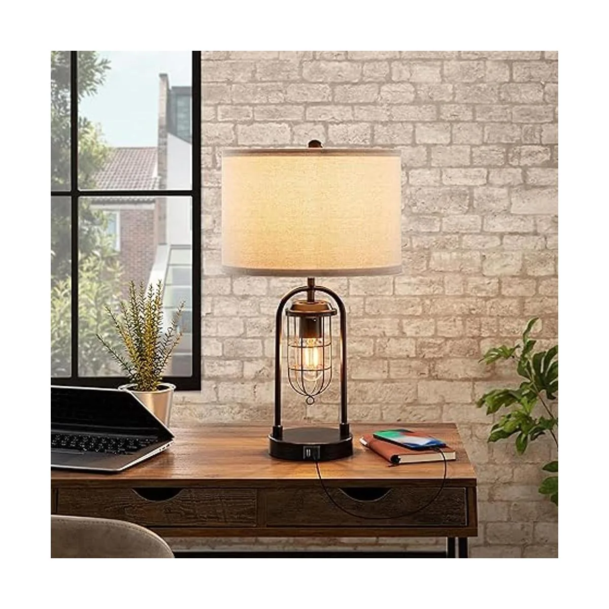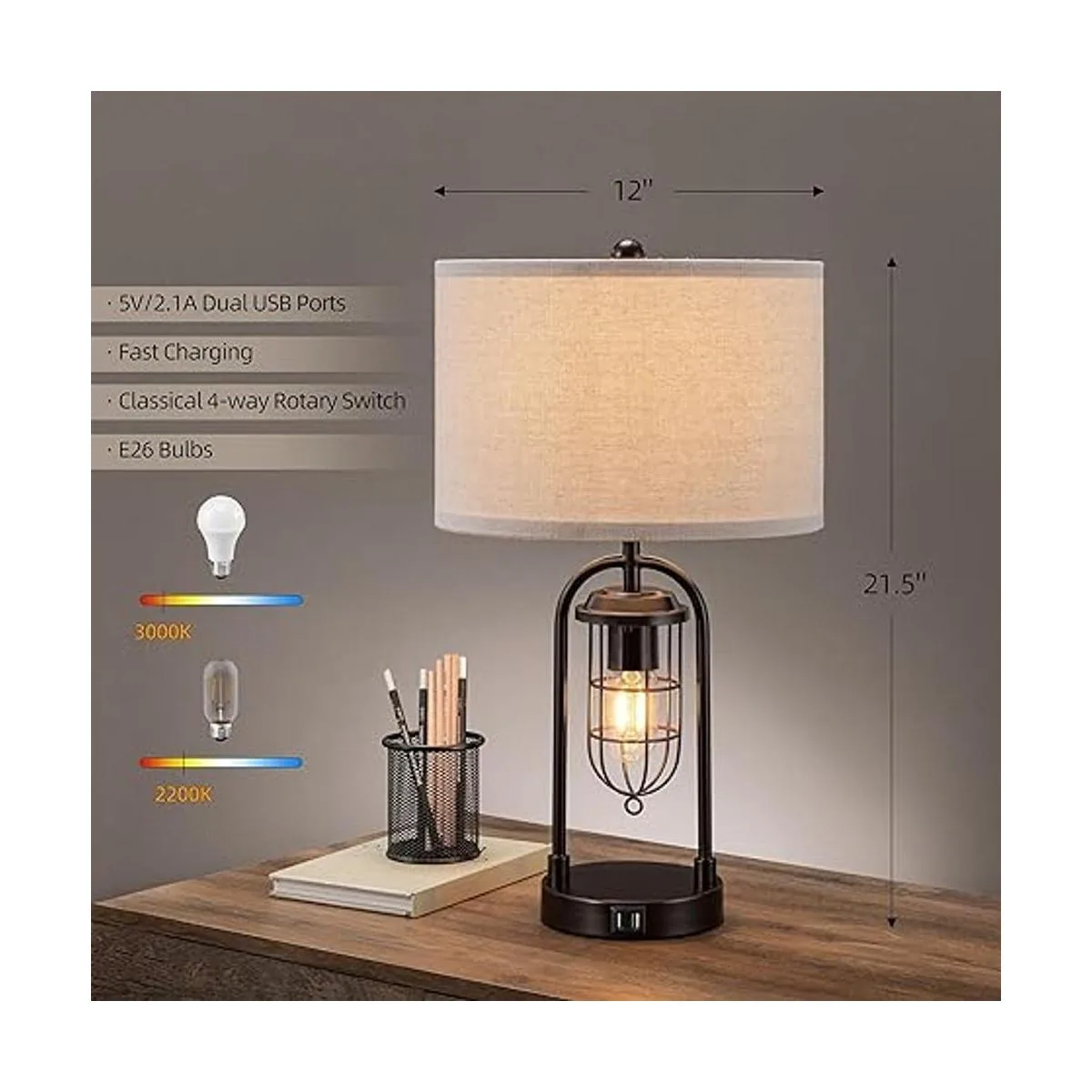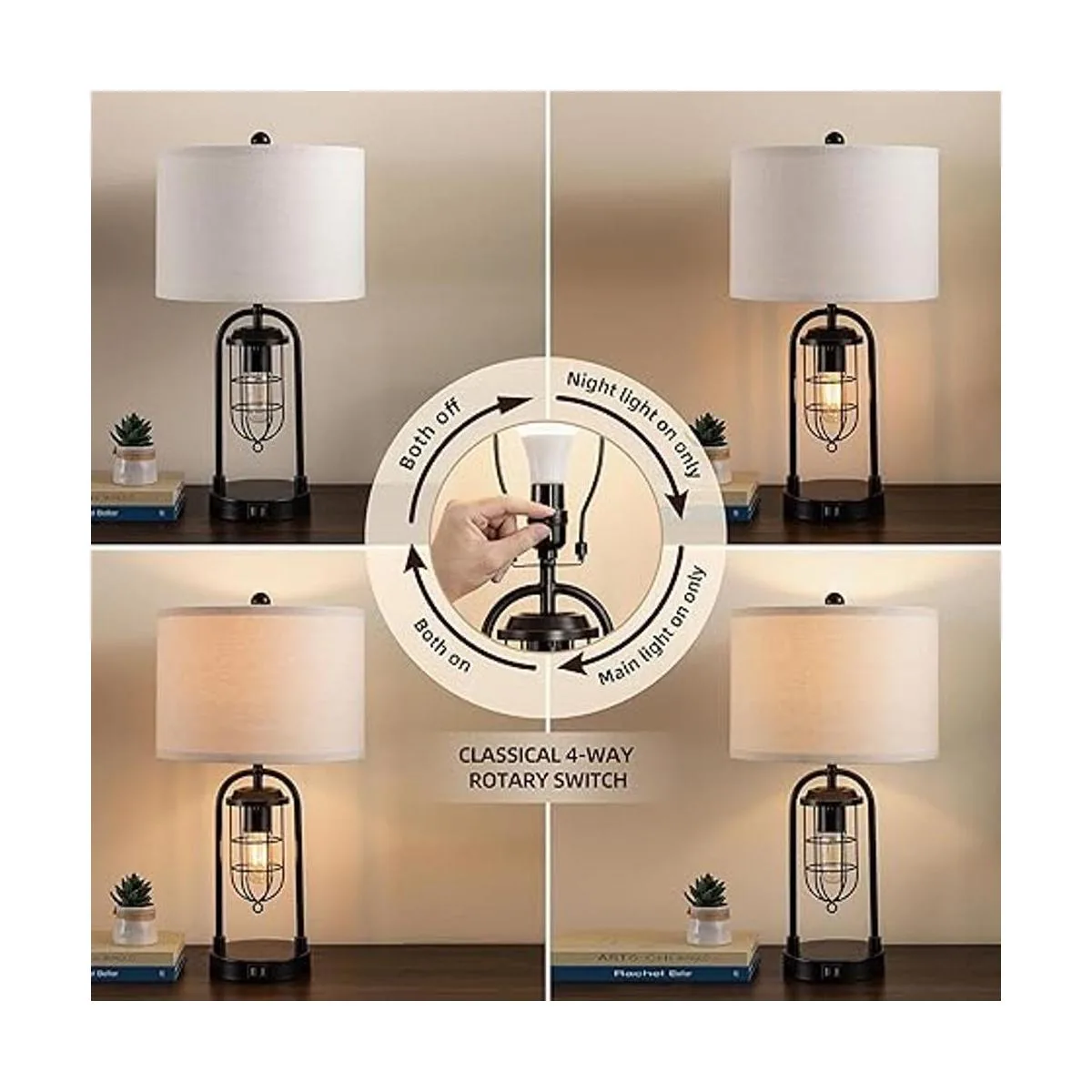 KAWOTI Juego de 2 lámparas de mesa de granja con puertos USB y luz nocturna, modernas lámparas de mesa de noche negras para sala de estar y dormitorio bombillas incluidas