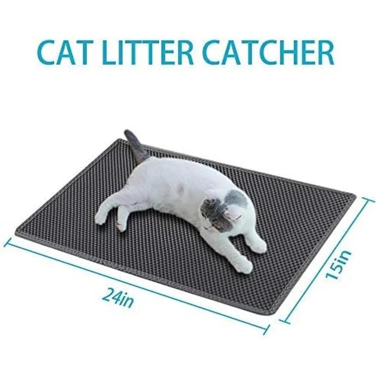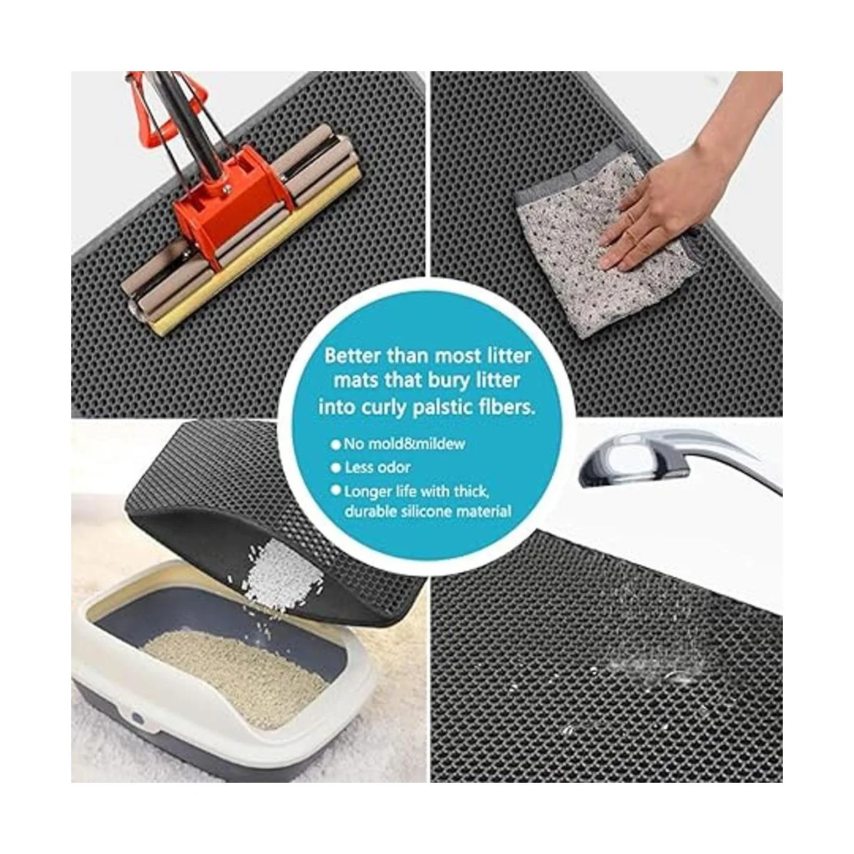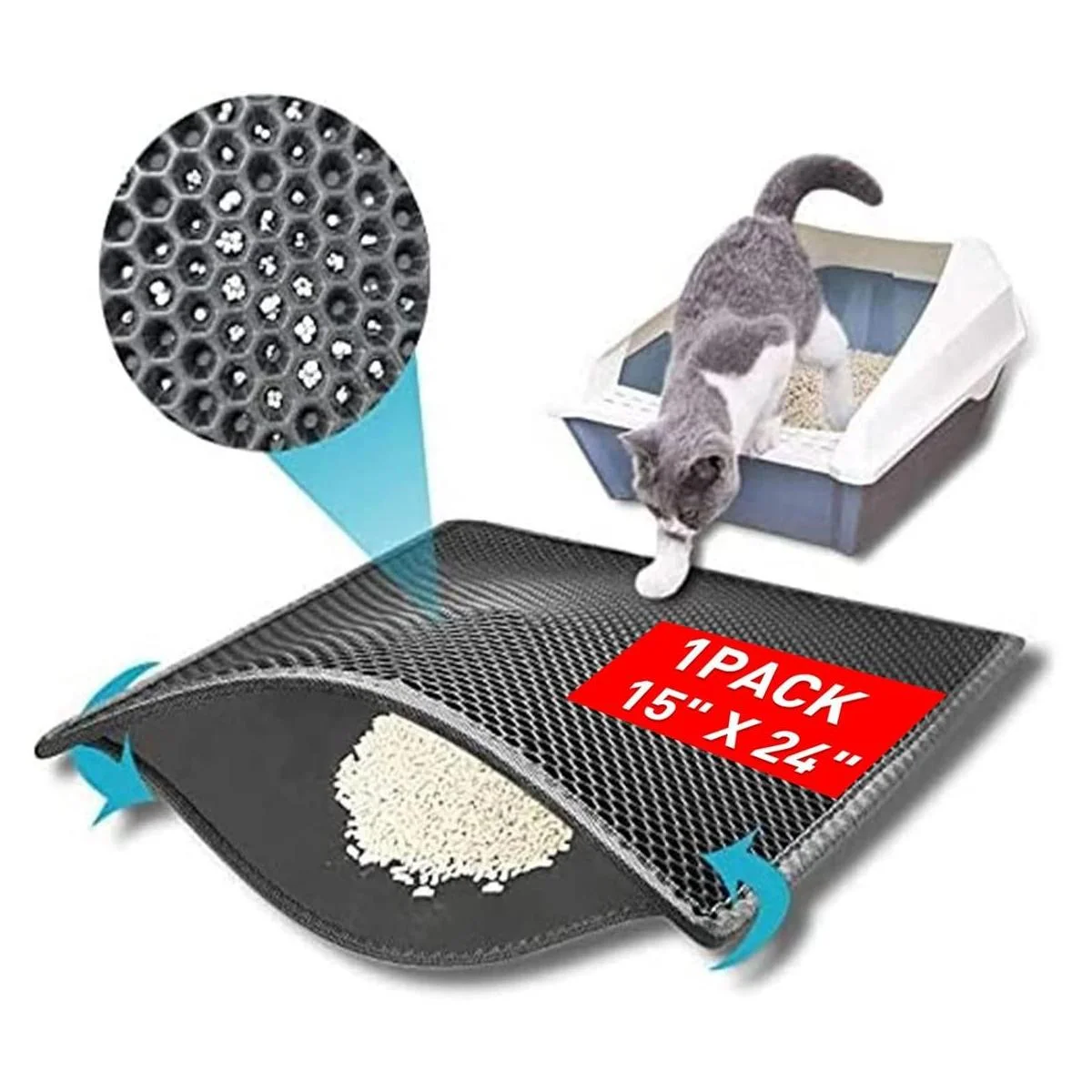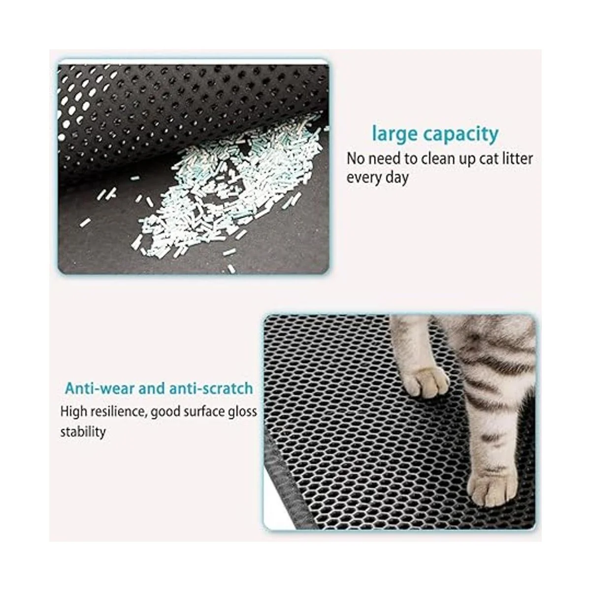 kaxionage Tapete de arena para gatos, tapete de caja de arena, diseño de doble capa de panal de abeja, tapete de arena impermeable a prueba de orina, control de dispersión fácil de limpiar