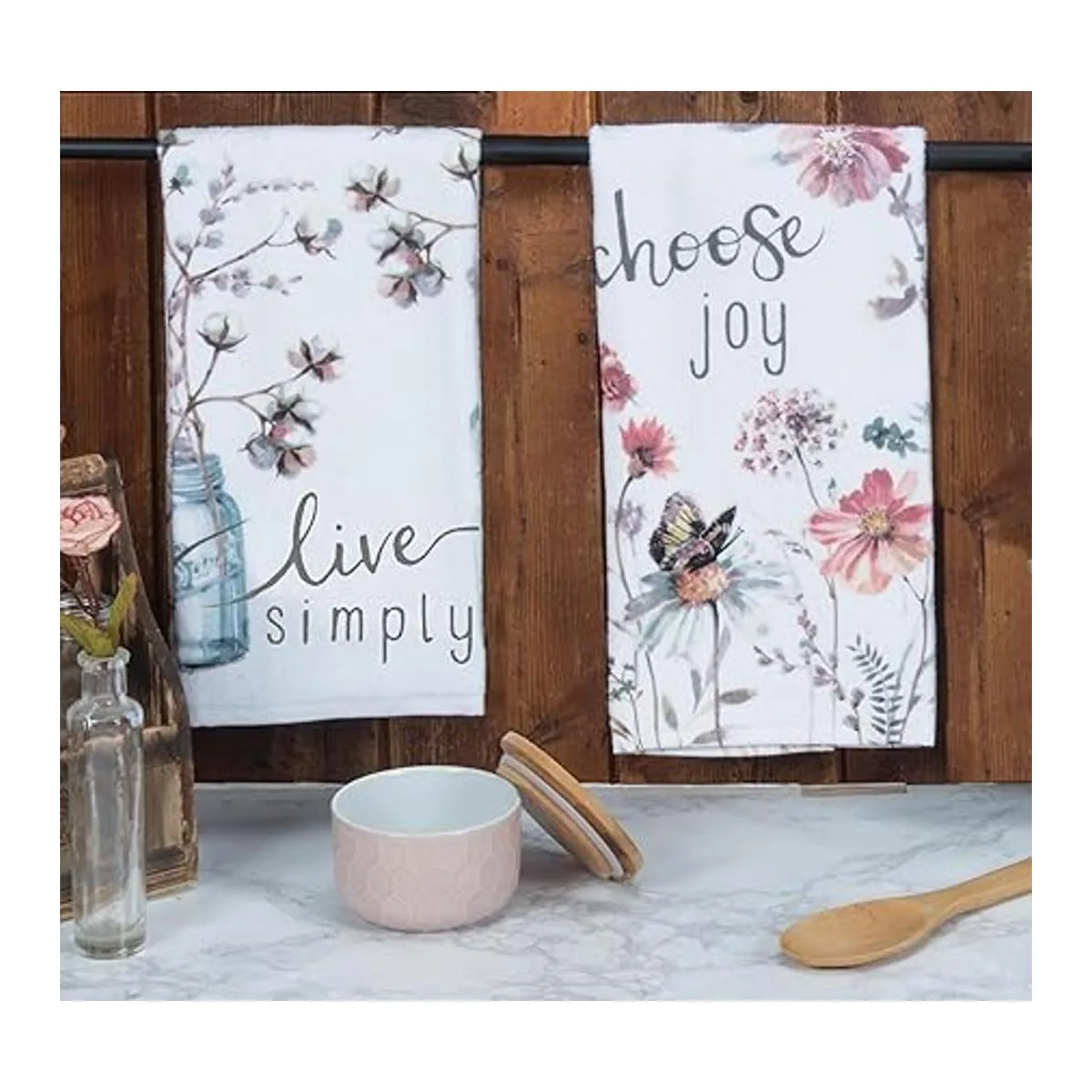 Kay Dee Designs Juego de toallas de cocina 2 piezas Elige Joy and Live Simply Toallas de mano de rizo, color blanco