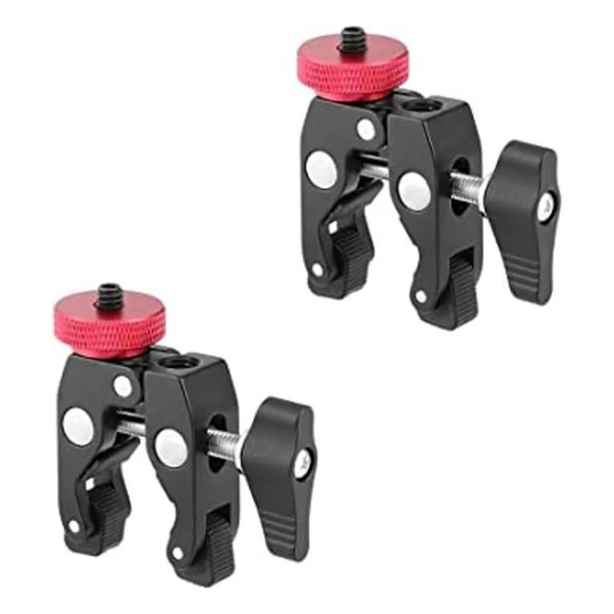 Kayulin Soporte de abrazadera de cangrejo con adaptador de tornillo de 14 pulgadas para trípode de cámara de luz flash negro, 2 piezas