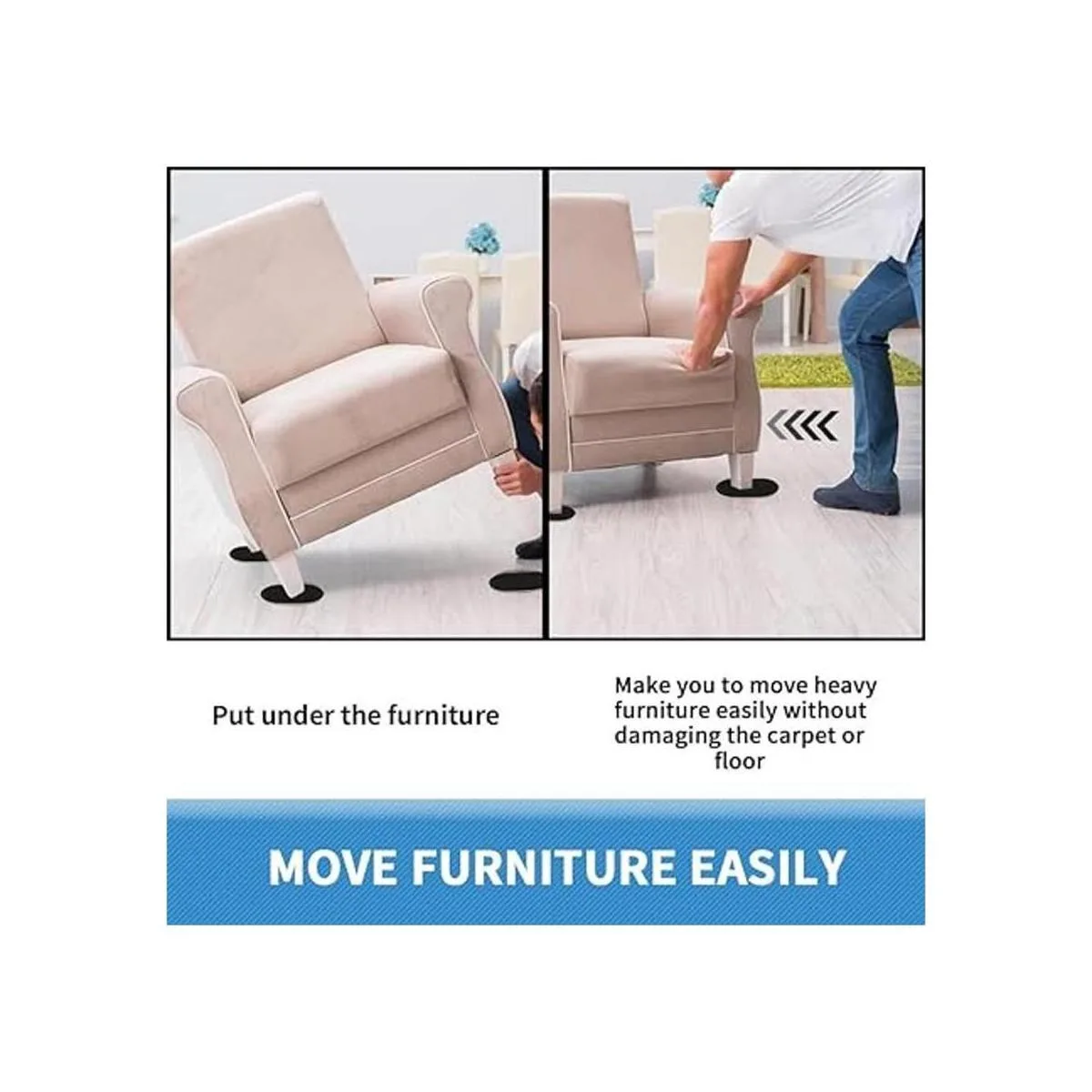 Adecuado para muebles pesados: el deslizador de muebles de gran tamaño es perfecto para mover mesas, camas, aparadores, armarios, estanterías, sofás, cajas fuertes y otros muebles pesados en cualquier alfombra. Capaz de ayudarte a mover muebles cuando quieras moverte y limpiar la habitación.