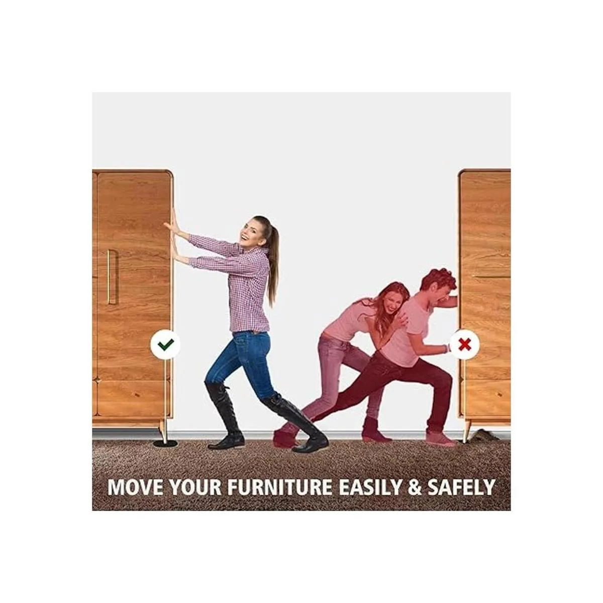 Simple y práctico: al mover muebles, ya no tienes que preocuparte por que se atasque en la alfombra. Simplemente coloca nuestro mueble debajo de la esquina de tus muebles, luego puedes mover fácilmente los artículos donde quieras, fácil de operar.