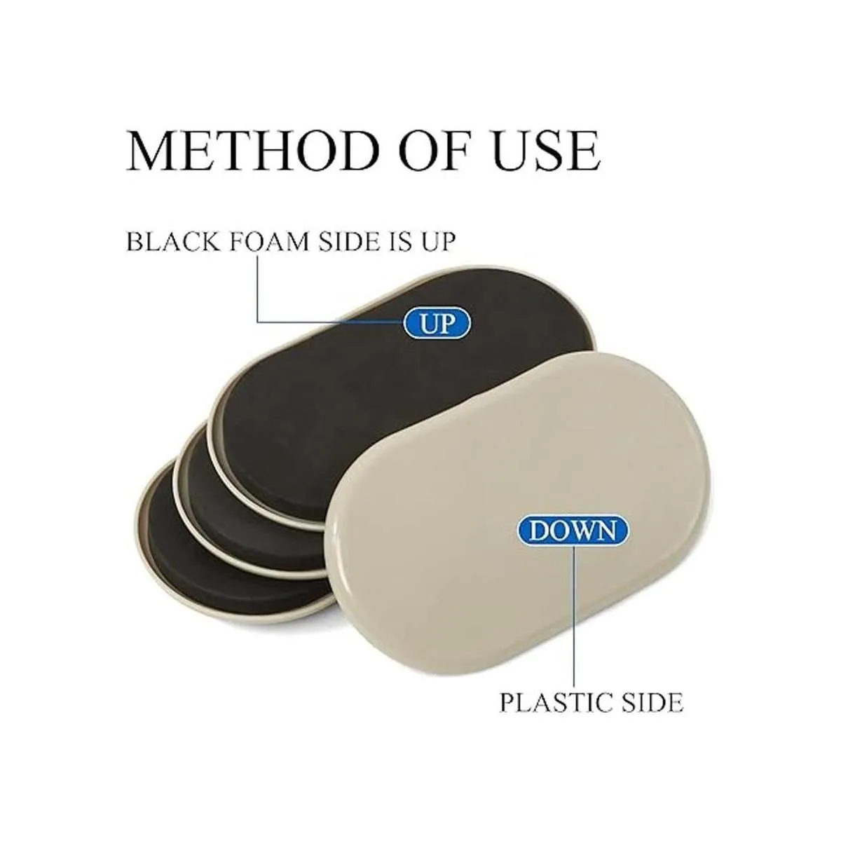 Reutilizable: cuando tus muebles son demasiado grandes y pesados para moverse, simplemente coloca el deslizador móvil debajo de los muebles, puede moverse fácilmente y proteger tu alfombra de daños. La almohadilla de agarre de EVA negra duradera debe estar boca arriba y es reutilizable.