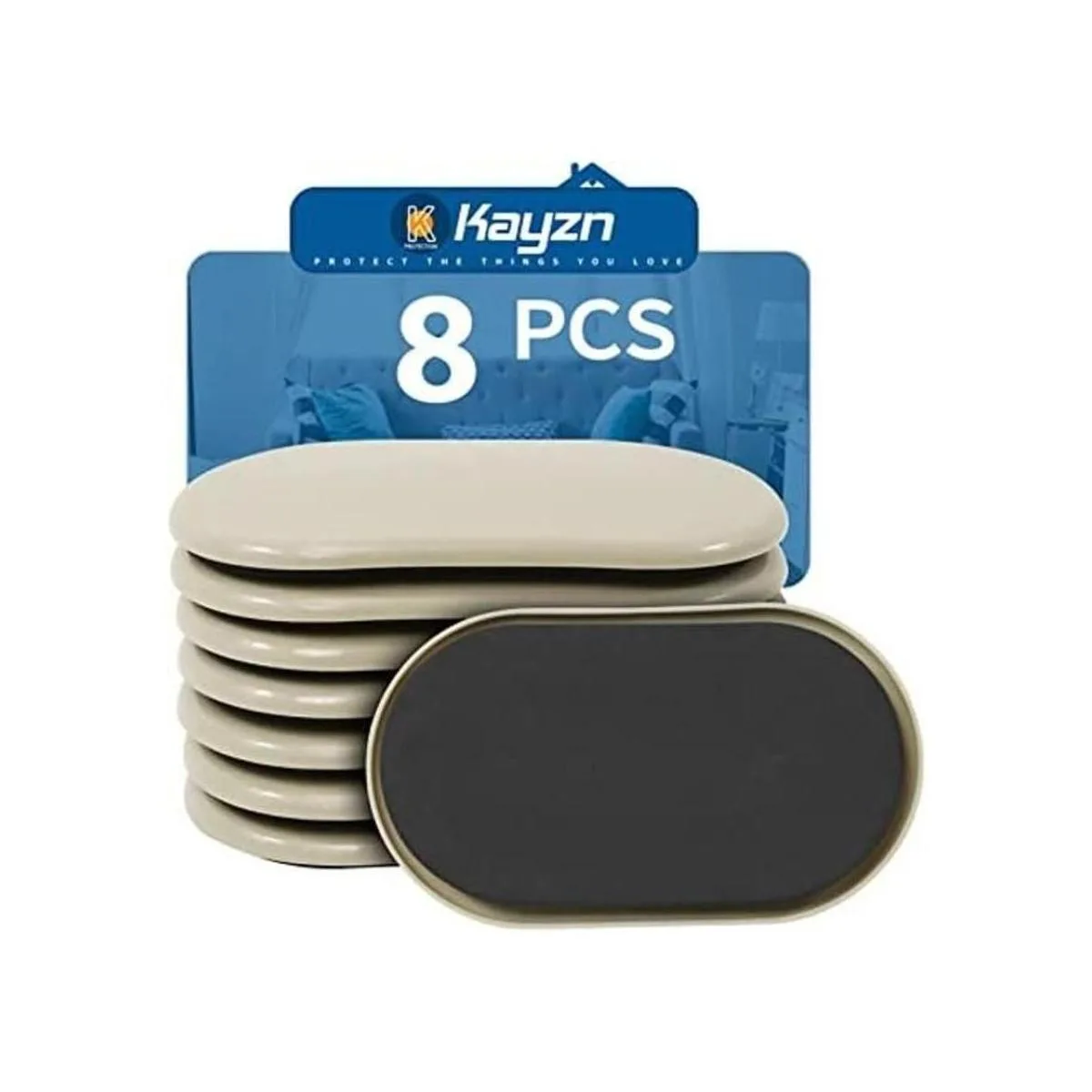 kayzn Deslizador de muebles, 31/2 x 6 pulgadas, ovalado de alta resistencia, deslizador de alfombra reutilizable para muebles, almohadillas de movimiento pesadas para muebles que protegen la superficie de la alfombra, (paquete de 8)
