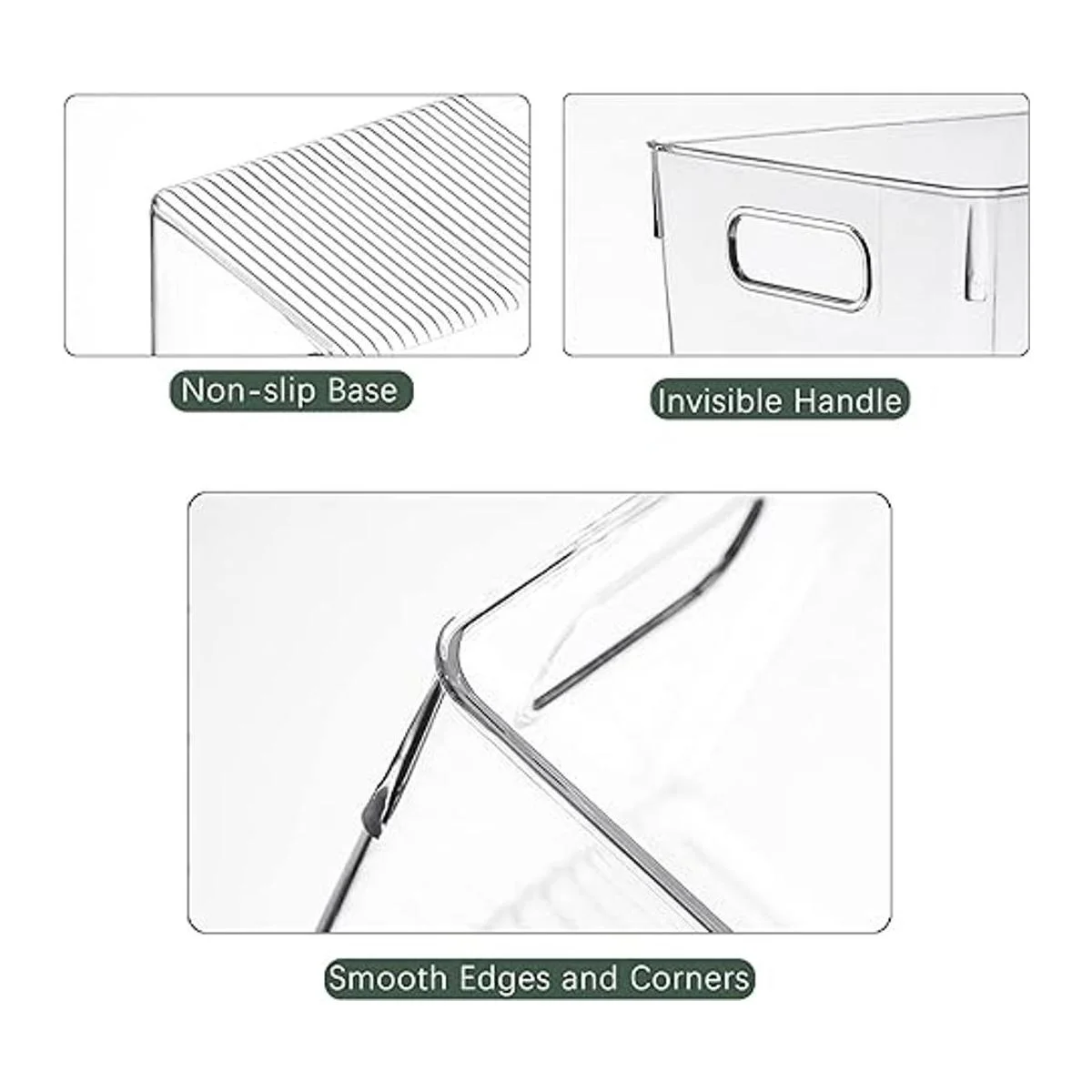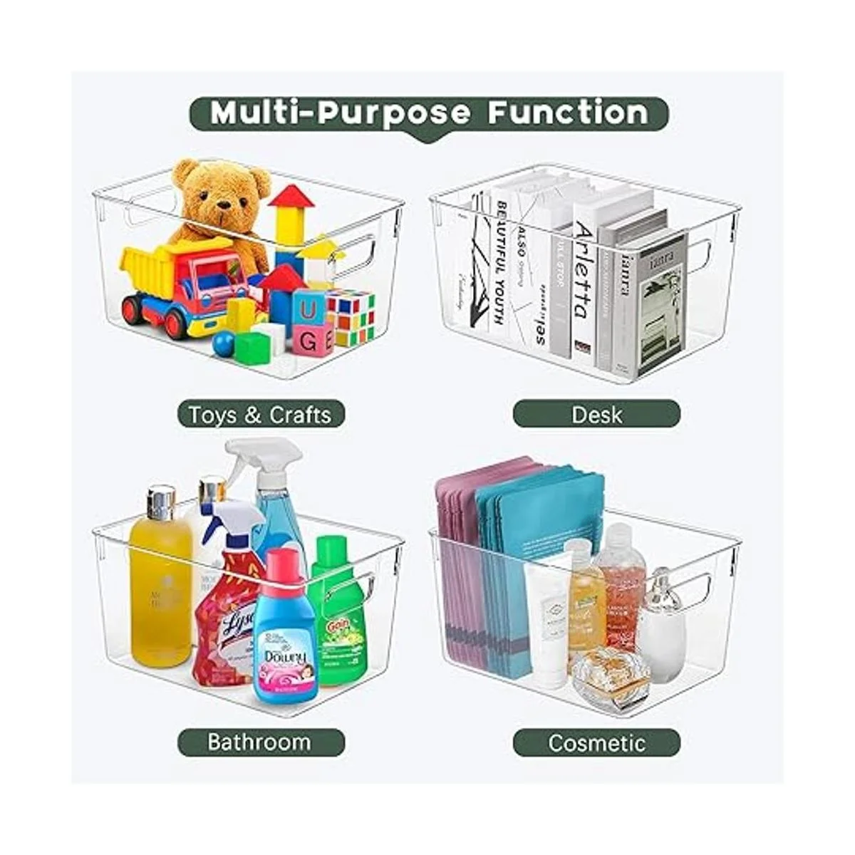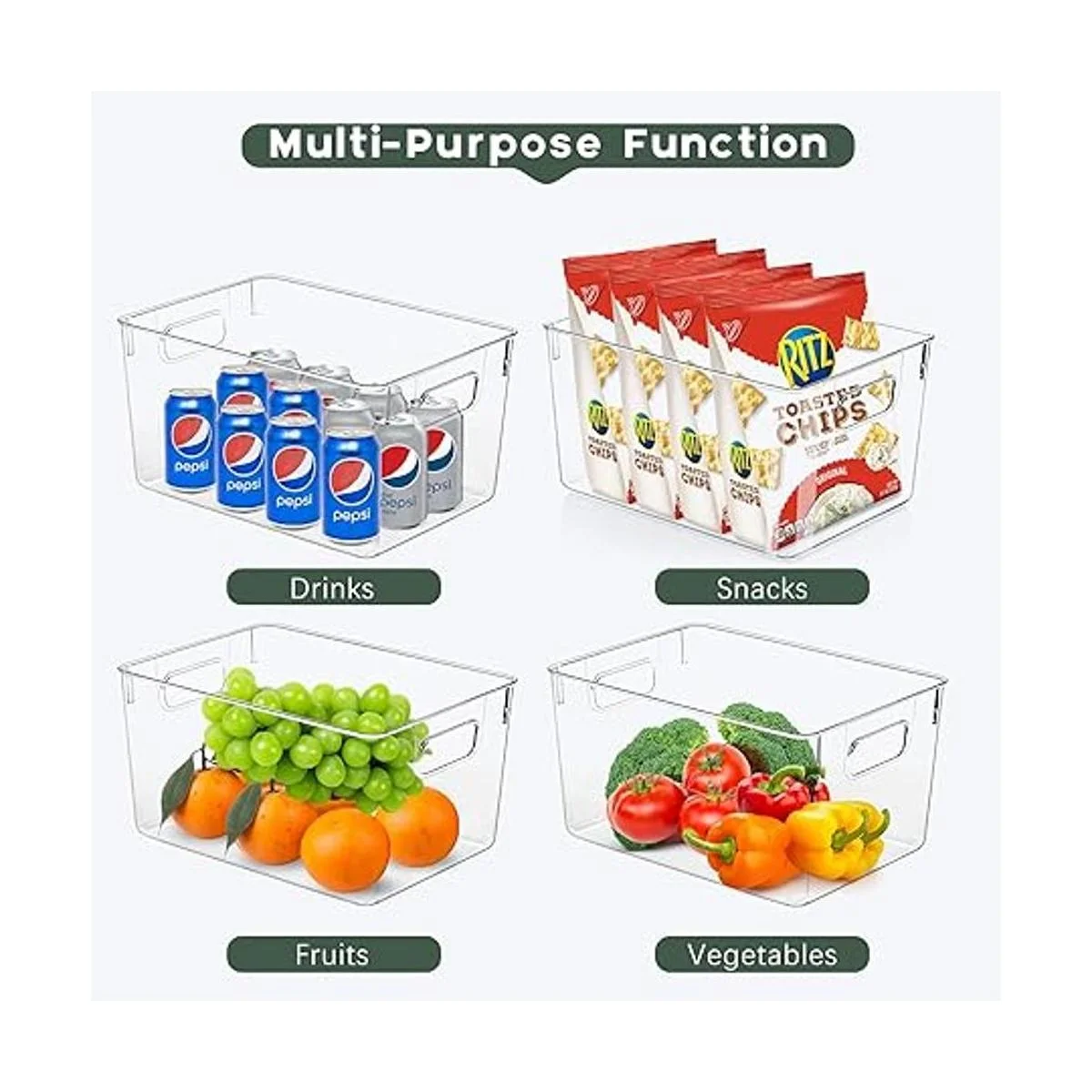 Maximiza el espacio: los contenedores transparentes para organizar son espaciosos para almacenar artículos, los mantienen organizados y hacen que el espacio se maximice. Estas cestas de almacenamiento de plástico son ideales para almacenar alimentos empaquetados, suministros para hornear, aperitivos, alimentos en caja y juguetes. También se puede utilizar perfectamente como organizador de refrigerador para frutas, verduras, productos enlatados, leche.