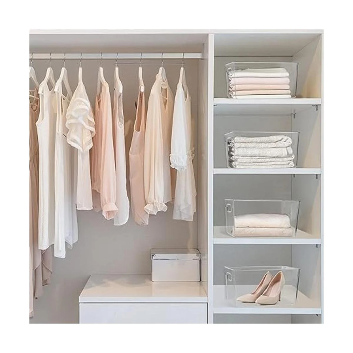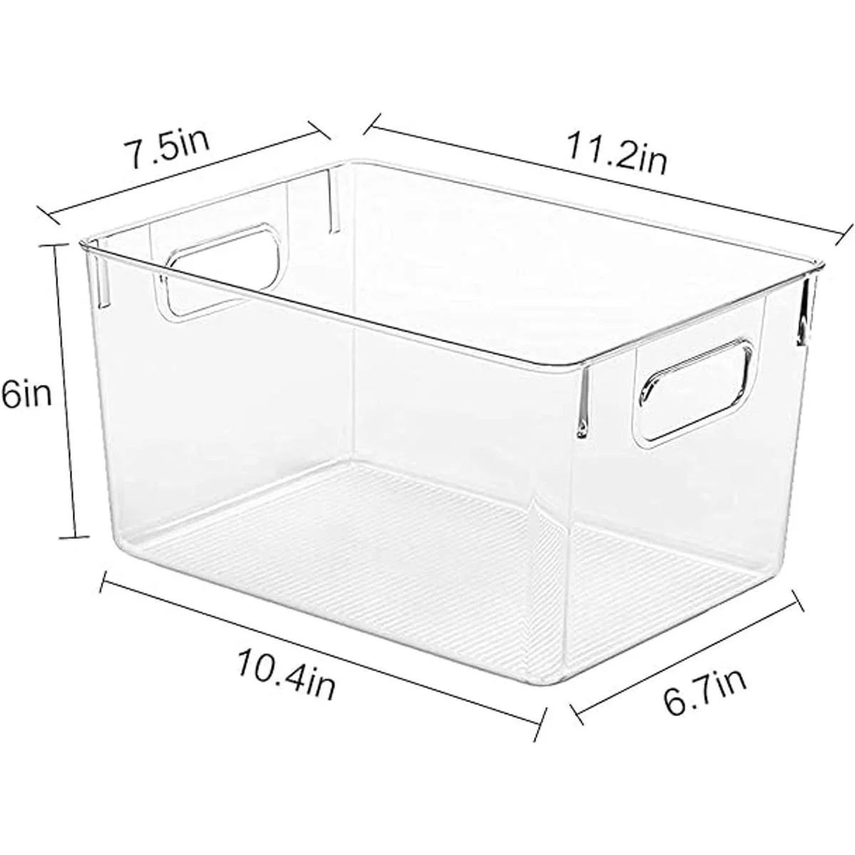 Tamaño perfecto: el juego de organizadores y almacenamiento incluye 4 cubos de almacenamiento grandes de plástico. El tamaño de cada contenedor organizador de plástico grande es de 11.2 pulgadas de largo x 7.5 pulgadas de ancho x 6 pulgadas de alto. Ten en cuenta que estos contenedores organizadores grandes no son apilables.