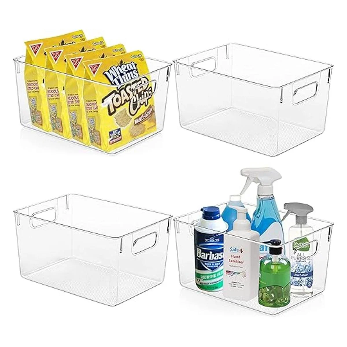 KAZIPA Contenedores de almacenamiento de plástico transparente, organización y almacenamiento perfectos de cocina, organización y almacenamiento de despensa, organizador de nevera, organizador de refrigerador, organizador de congelador, organizador de gabinete, paquete de 4