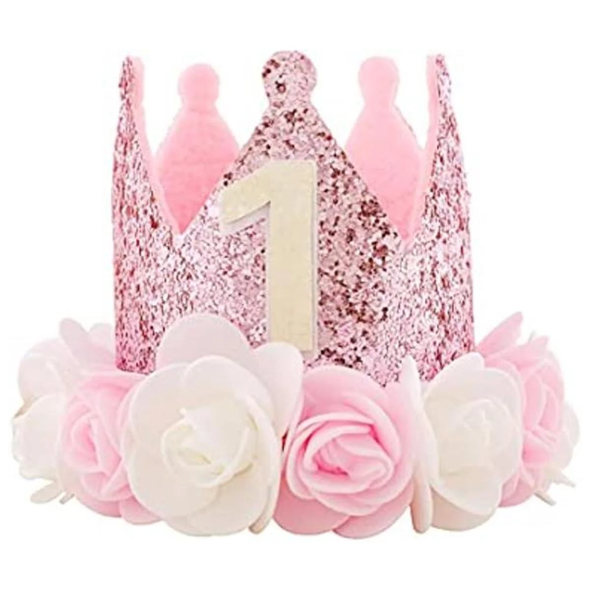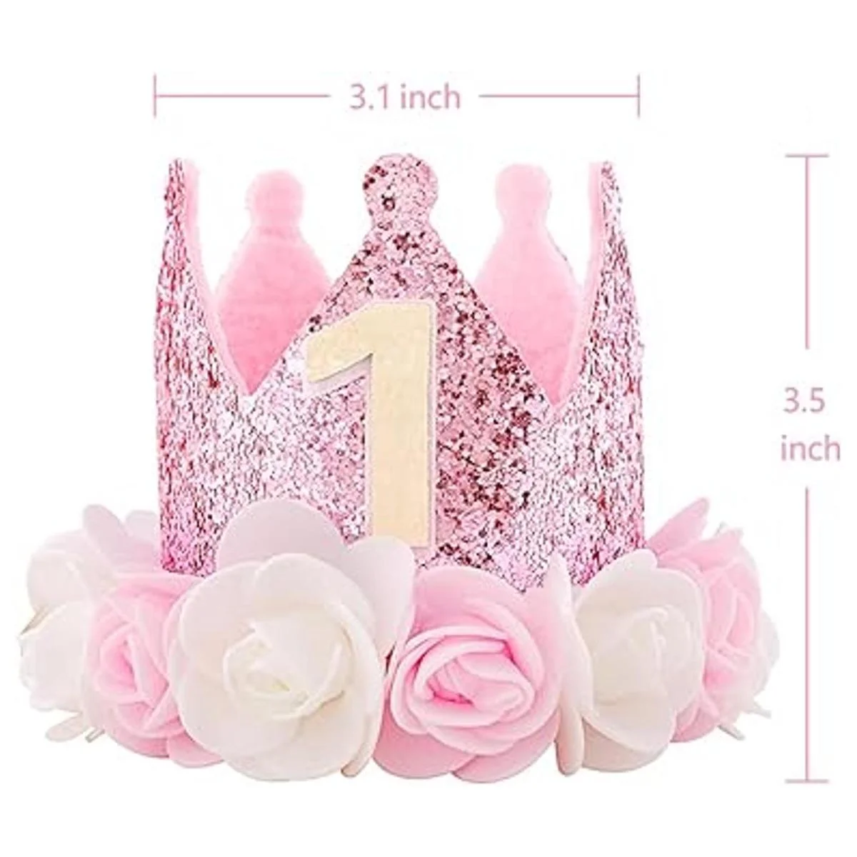 Kbrand Sombrero de primer cumpleaños para bebé niña, regalos de decoración de oro rosa para bebé, corona de fiesta rosa de un año, flores rosa princesa, 3 pulgadas