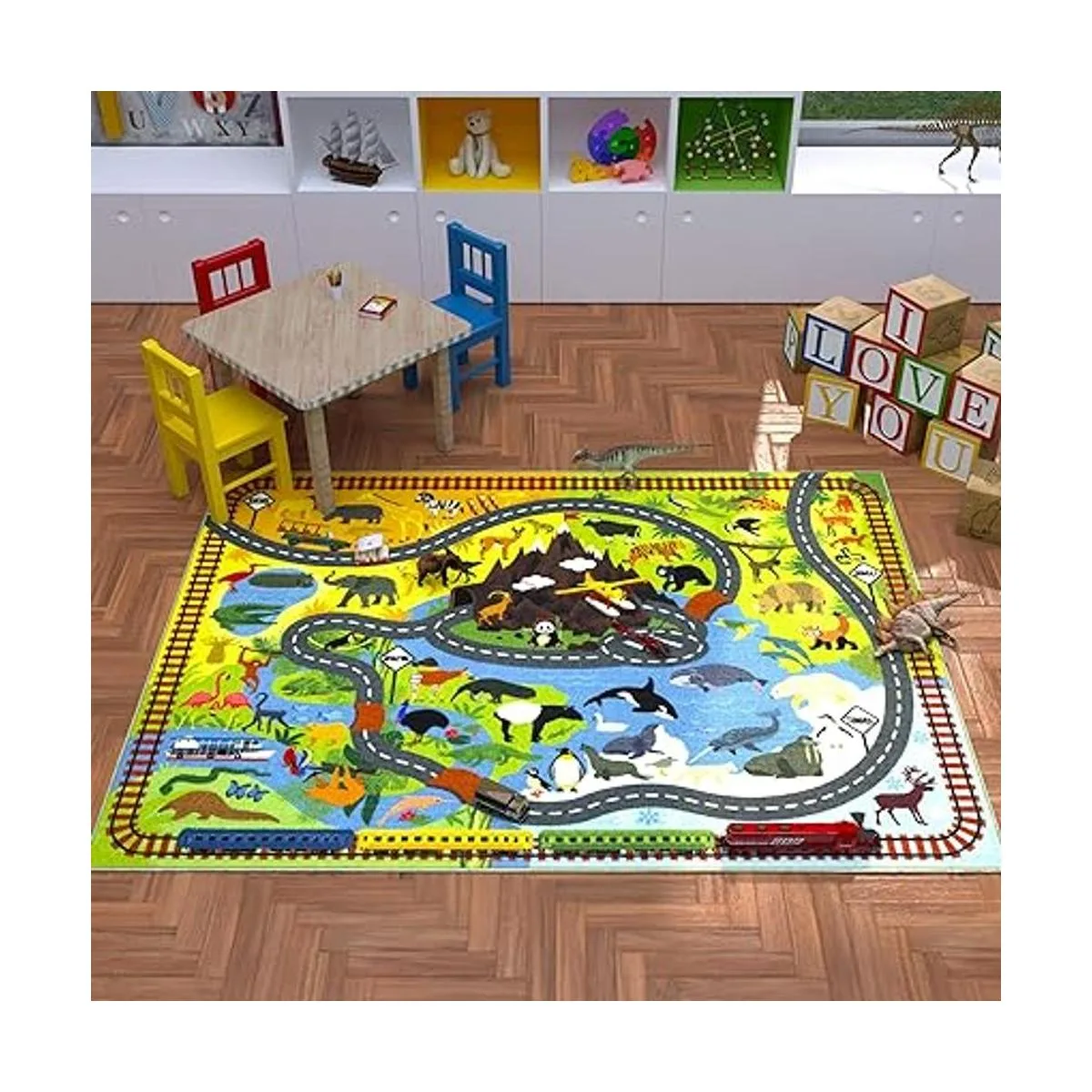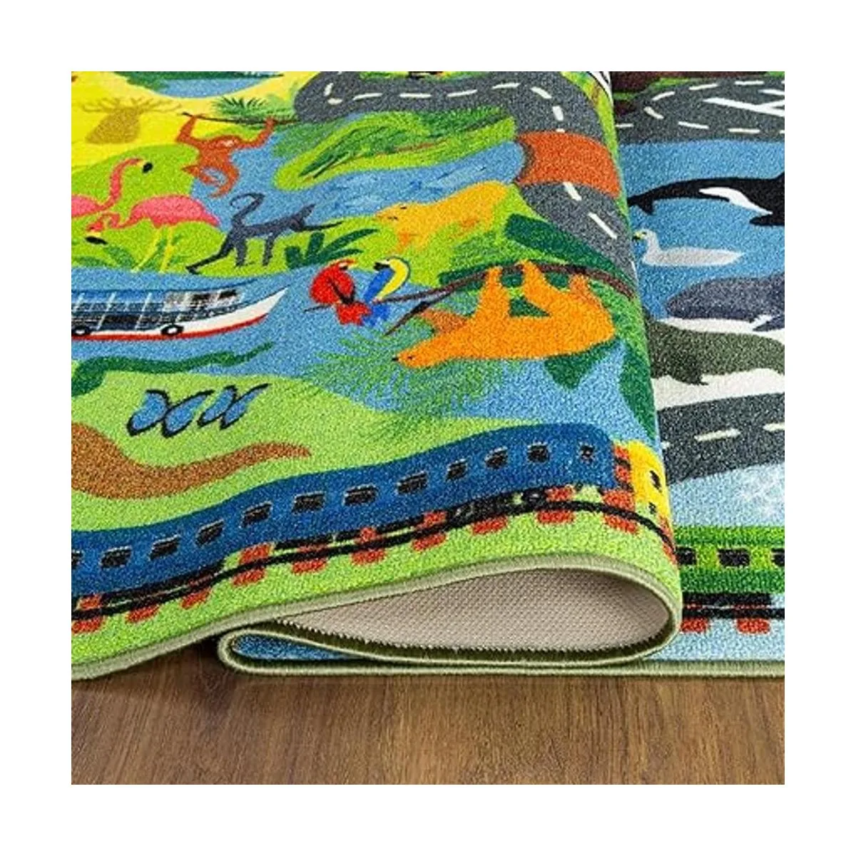 Parte trasera de goma de látex, pelo corto, polipropileno resistente al desgaste y al desgaste, hecha a máquina. Alfombra educativa de safari animal