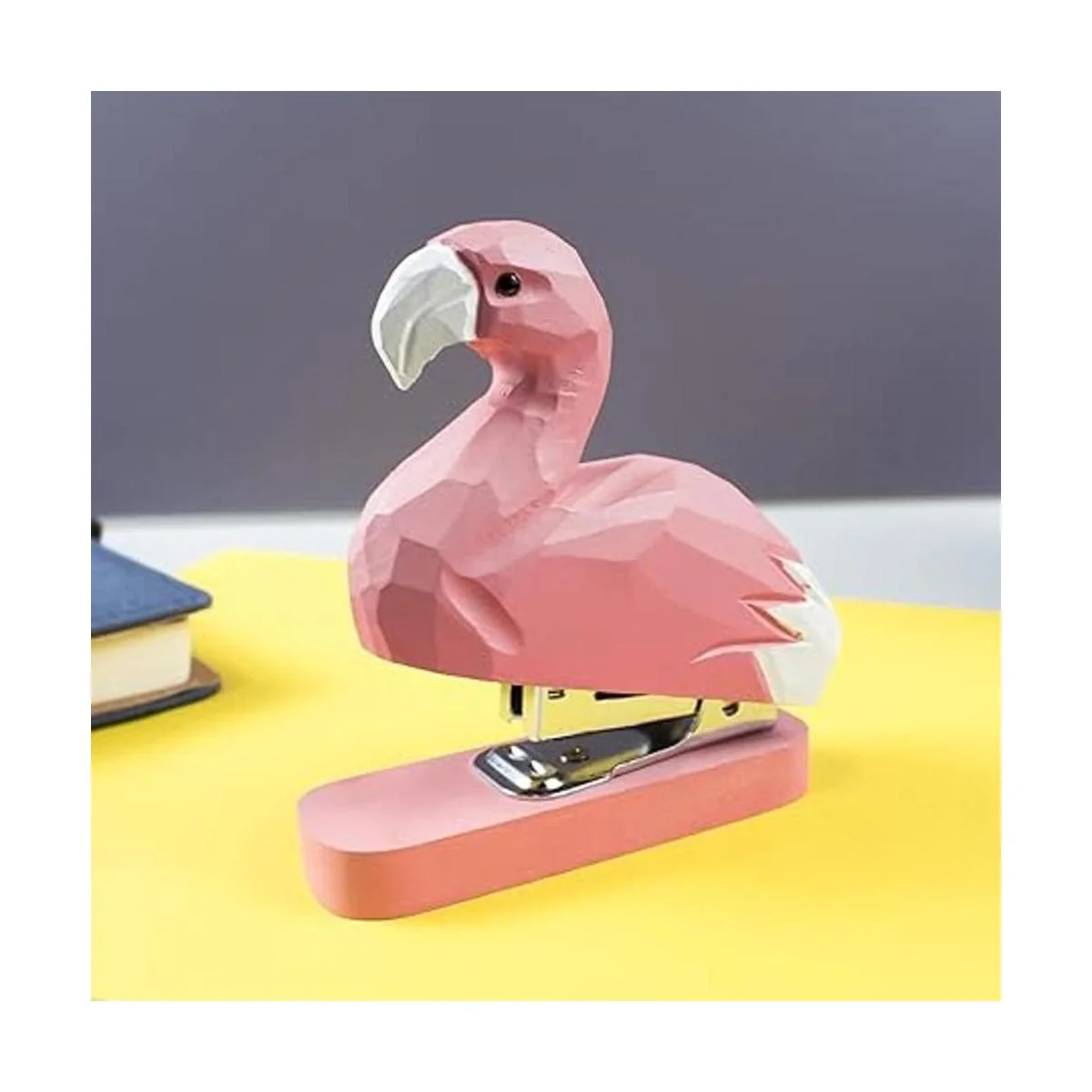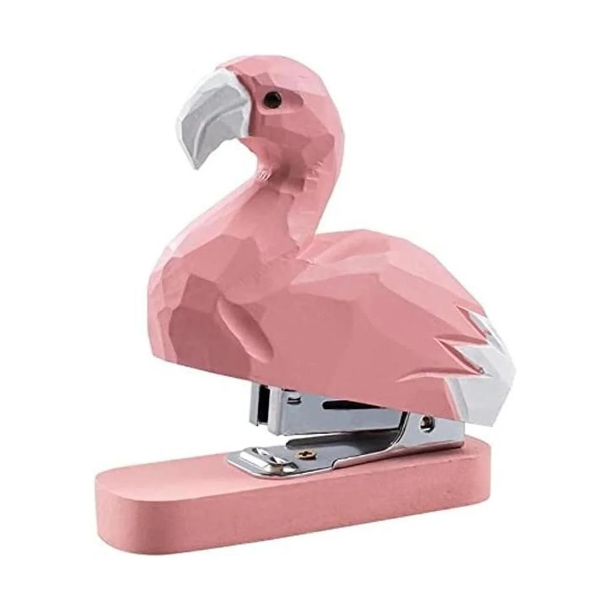 Kcgani Grapadora de animales de madera, estatua de arte de costura de escritorio, escultura para papelería escolar y oficina Flamingo
