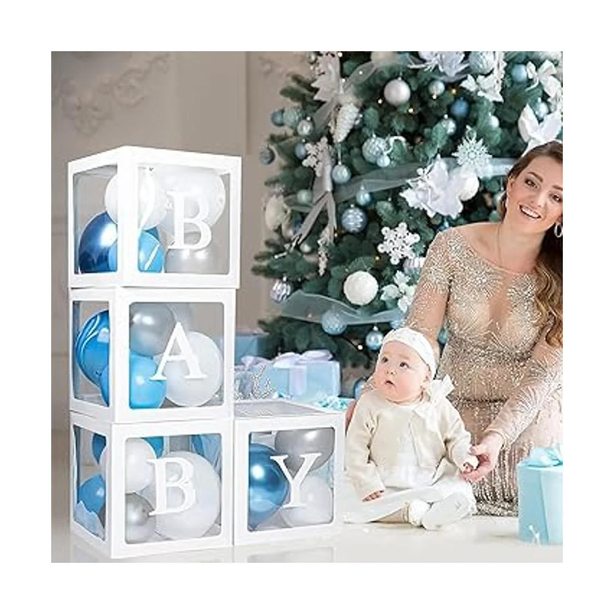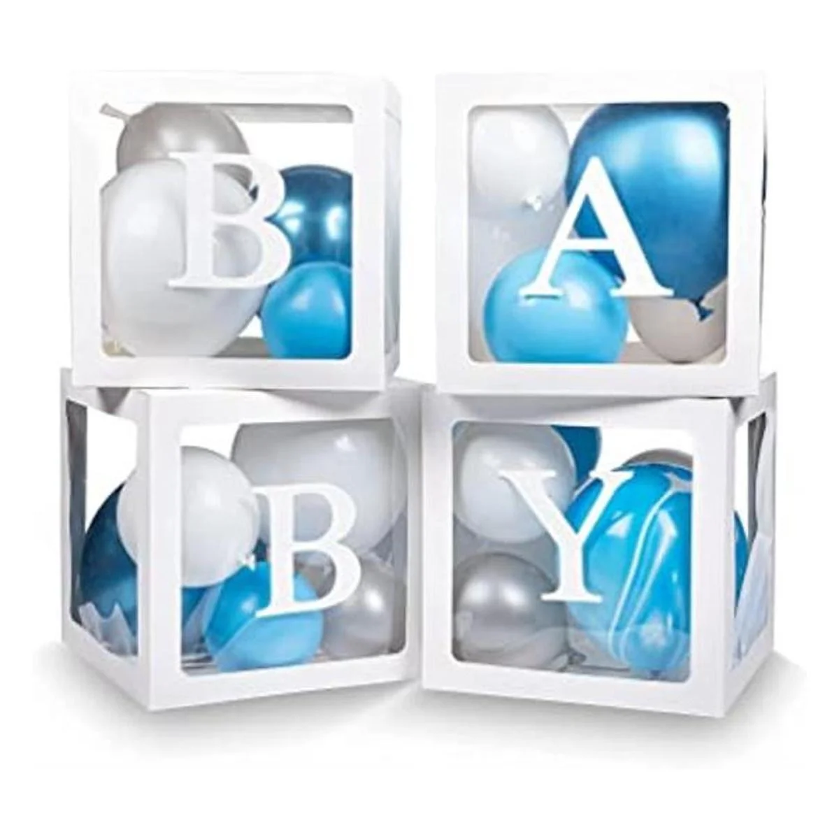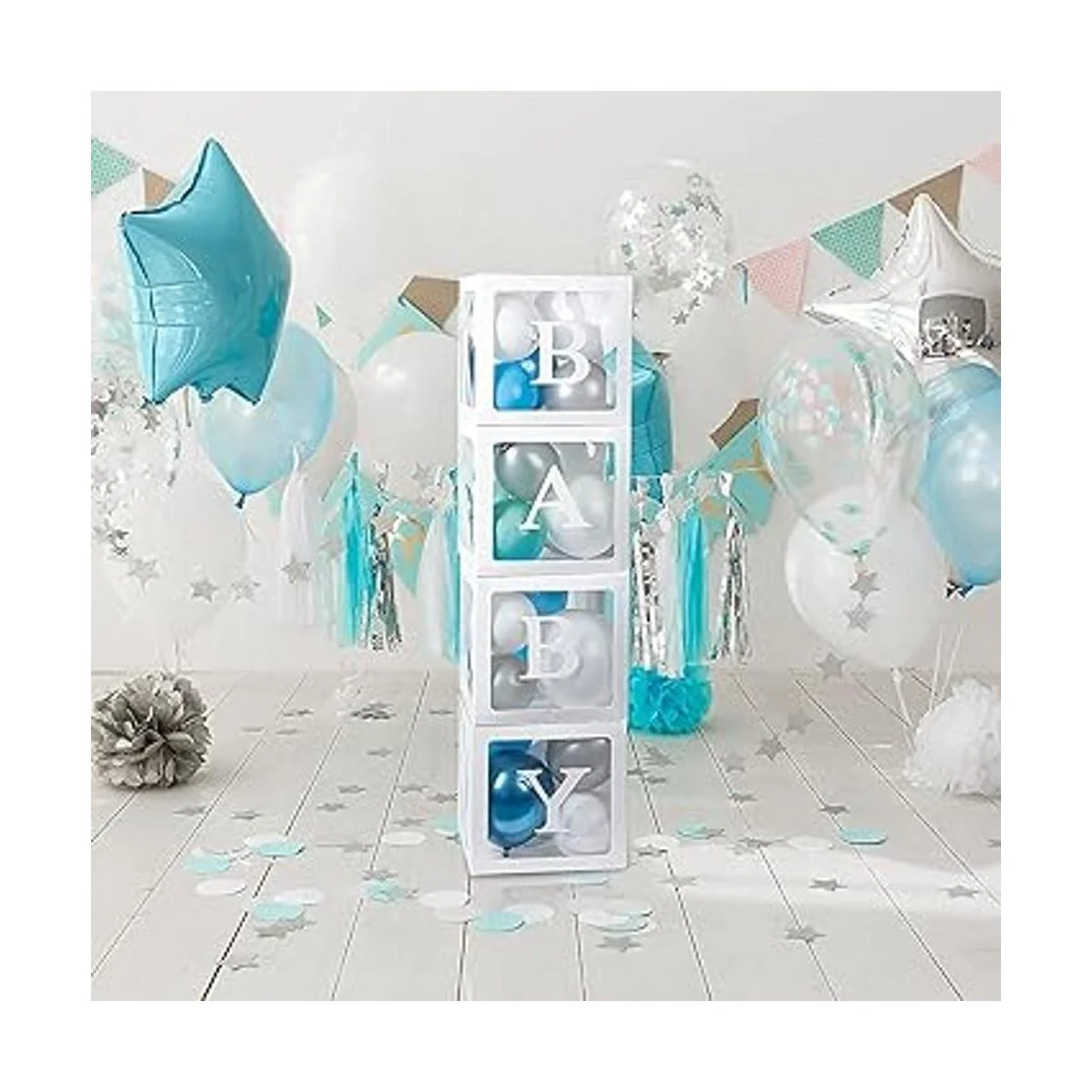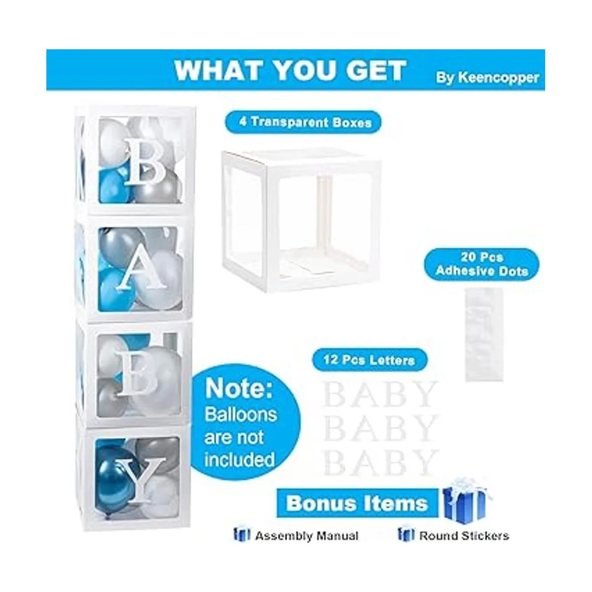 Keencopper Cajas de bebé con letras para baby shower, decoraciones de baby shower para niños o niñas, cajas de globos transparentes para fiesta de primer cumpleaños, despedida de soltera, revelación de género, reutilizables