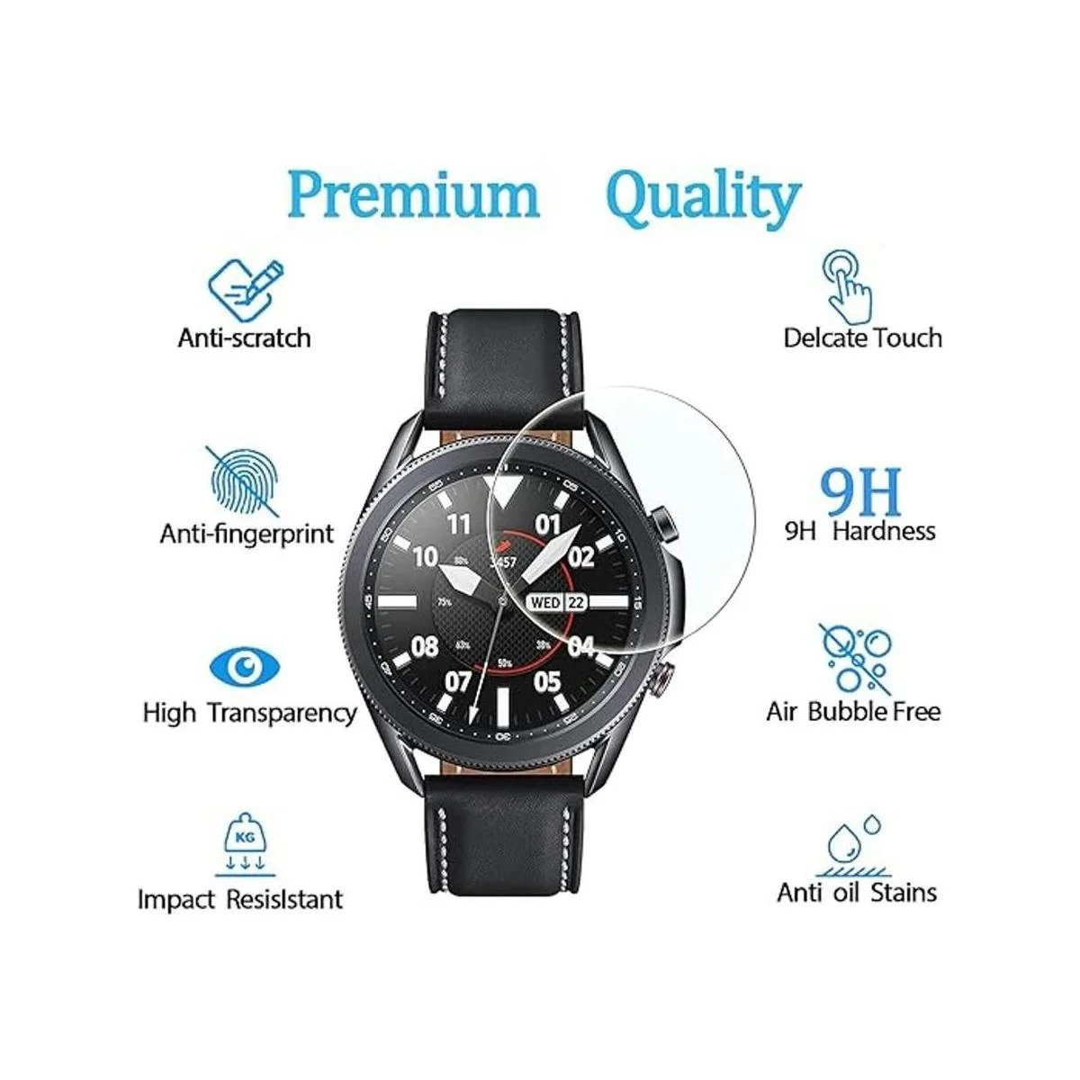 KELOLIN Protector de pantalla de cristal templado para Samsung Galaxy Watch3 Titanium de 1.772 in, antihuellas, antiarañazos, 4 unidades, compatible con Samsung Galaxy Watch3 Titanium de 1.772 in