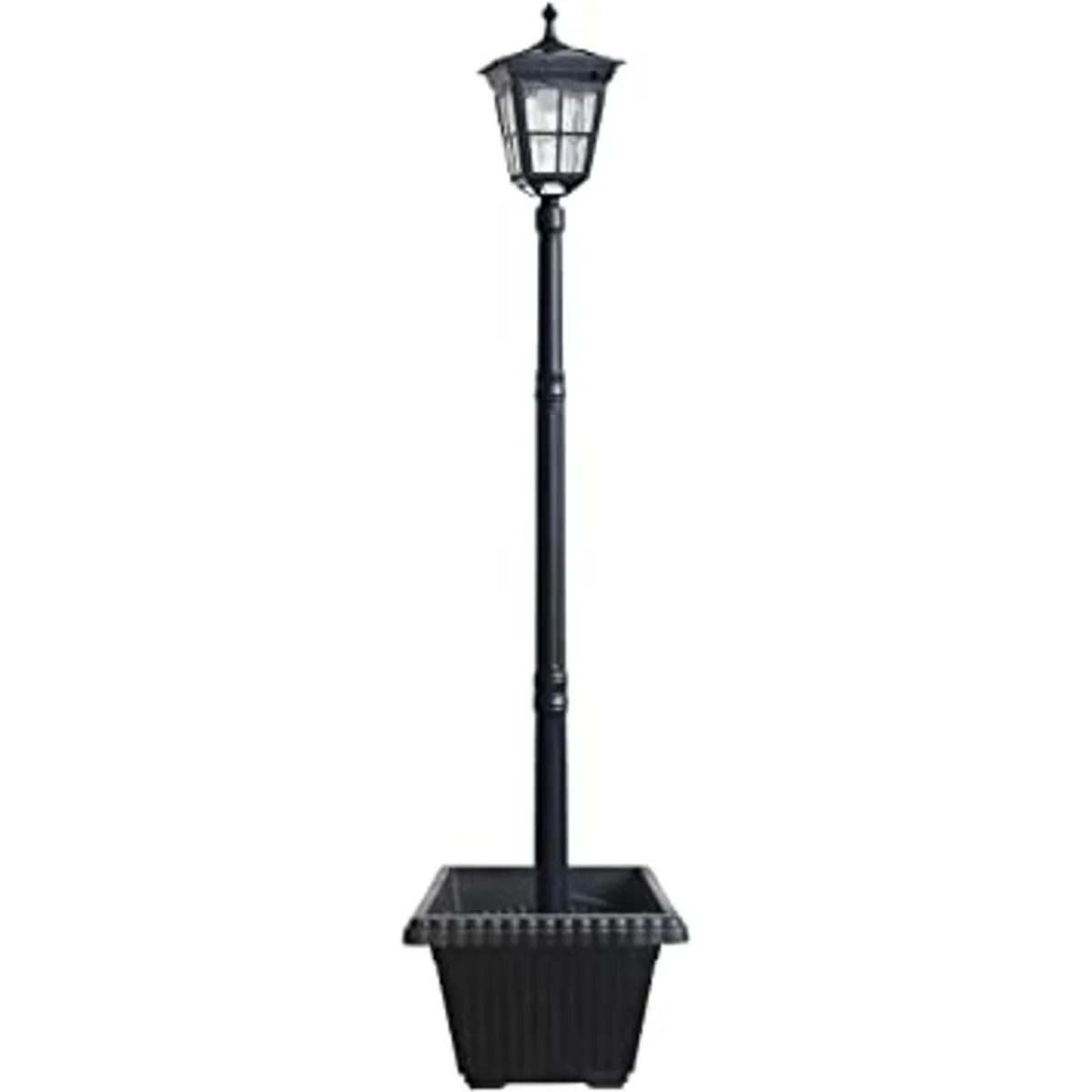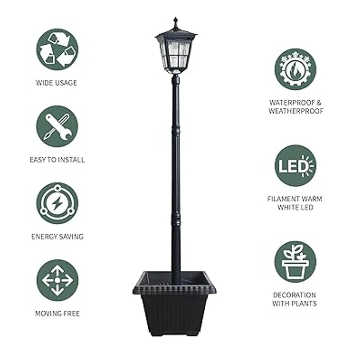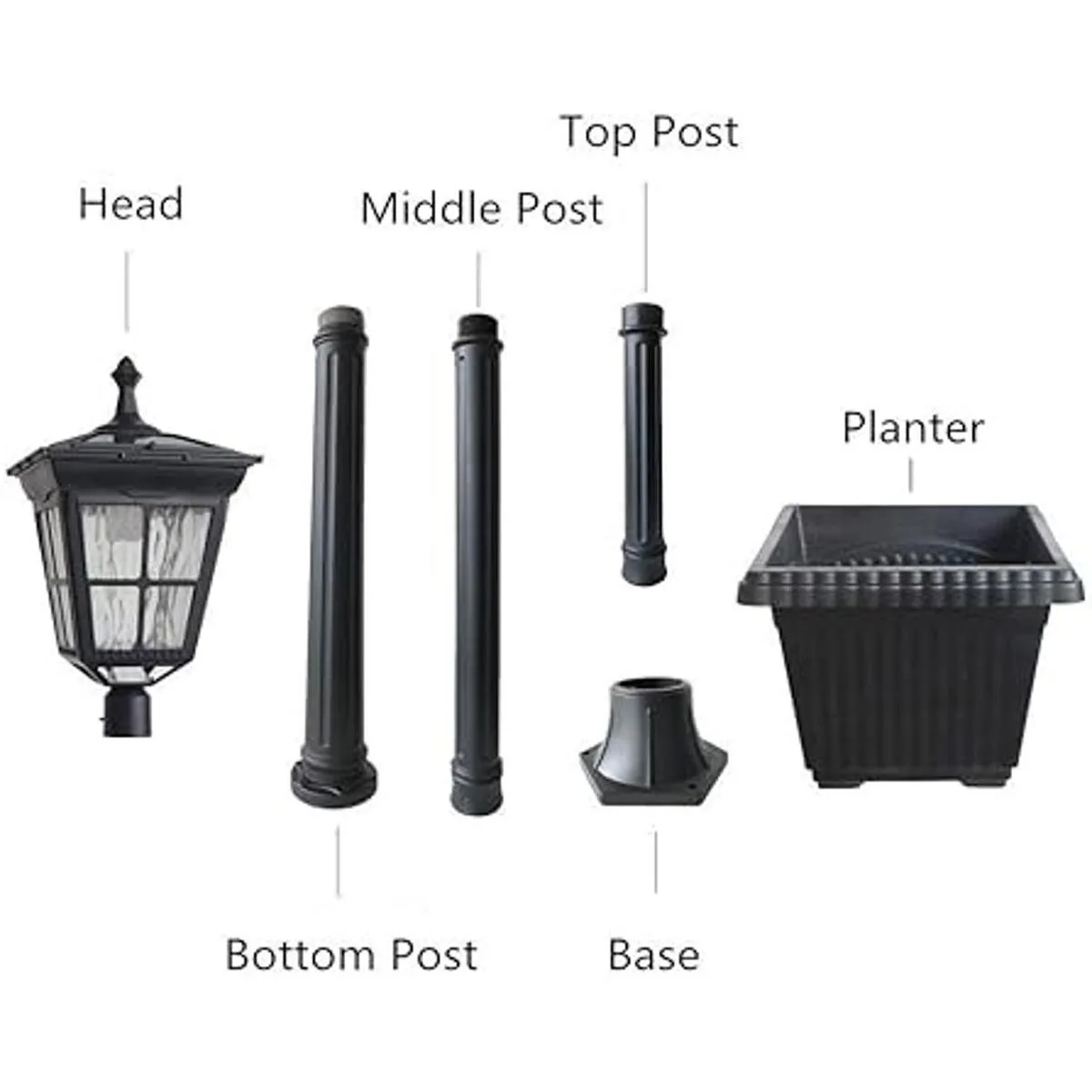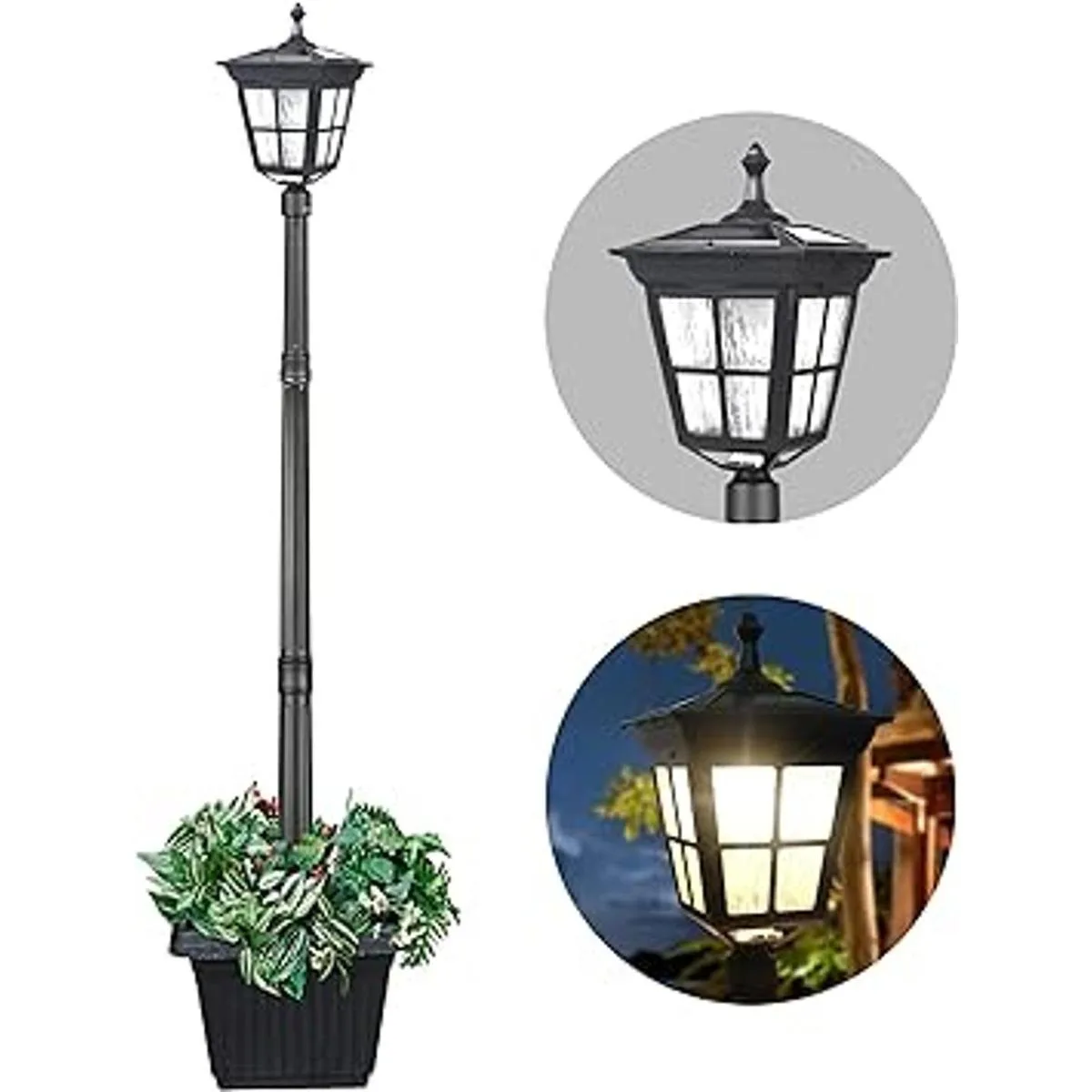 Estilo decorativo: Este clásico poste de lámpara de aluminio fundido, cristal ondulado y maceta cuadrada de plástico proporciona no sólo iluminación funcional, sino también una atractiva decoración para tu patio.