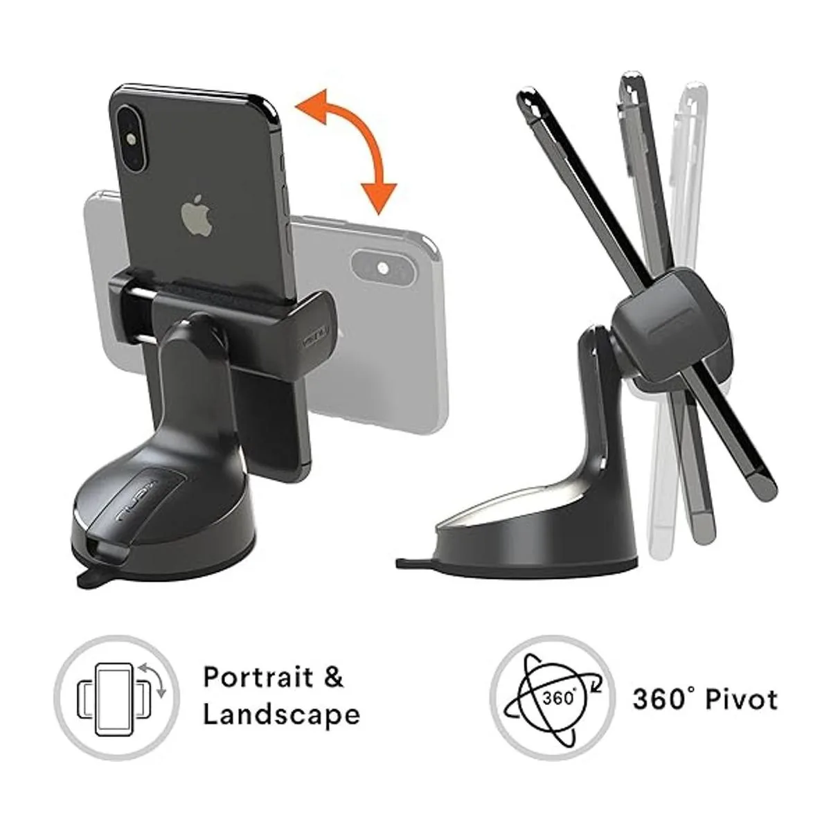 Pivote de 360: una junta de bola y enchufe notablemente suave permite que el teléfono se coloque en cualquier ángulo, manteniendo la pantalla de forma segura a la vista como uno de los accesorios de coche más versátiles del mercado.