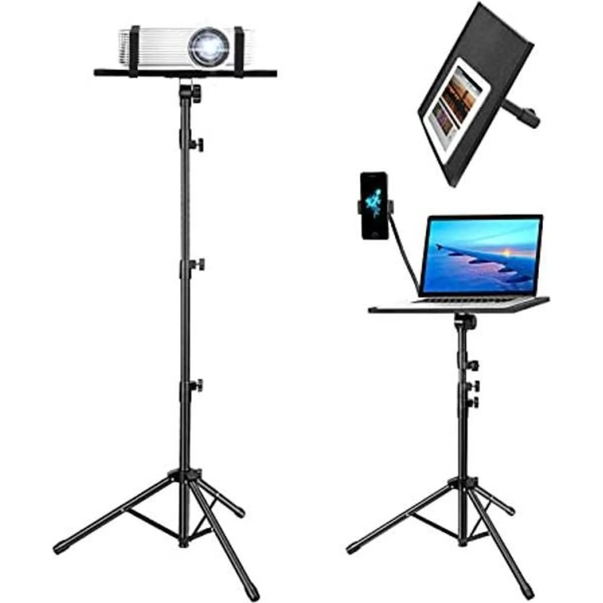 Kereal Laptop Projector Tripod Stand, Universal Portable Floor Holder Mount Stand for DJ Equipment,Office,Stage,Studio,Podium,Adjustable Height 25 to 48 Inch, with Tray and Gooseneck Phone Holder