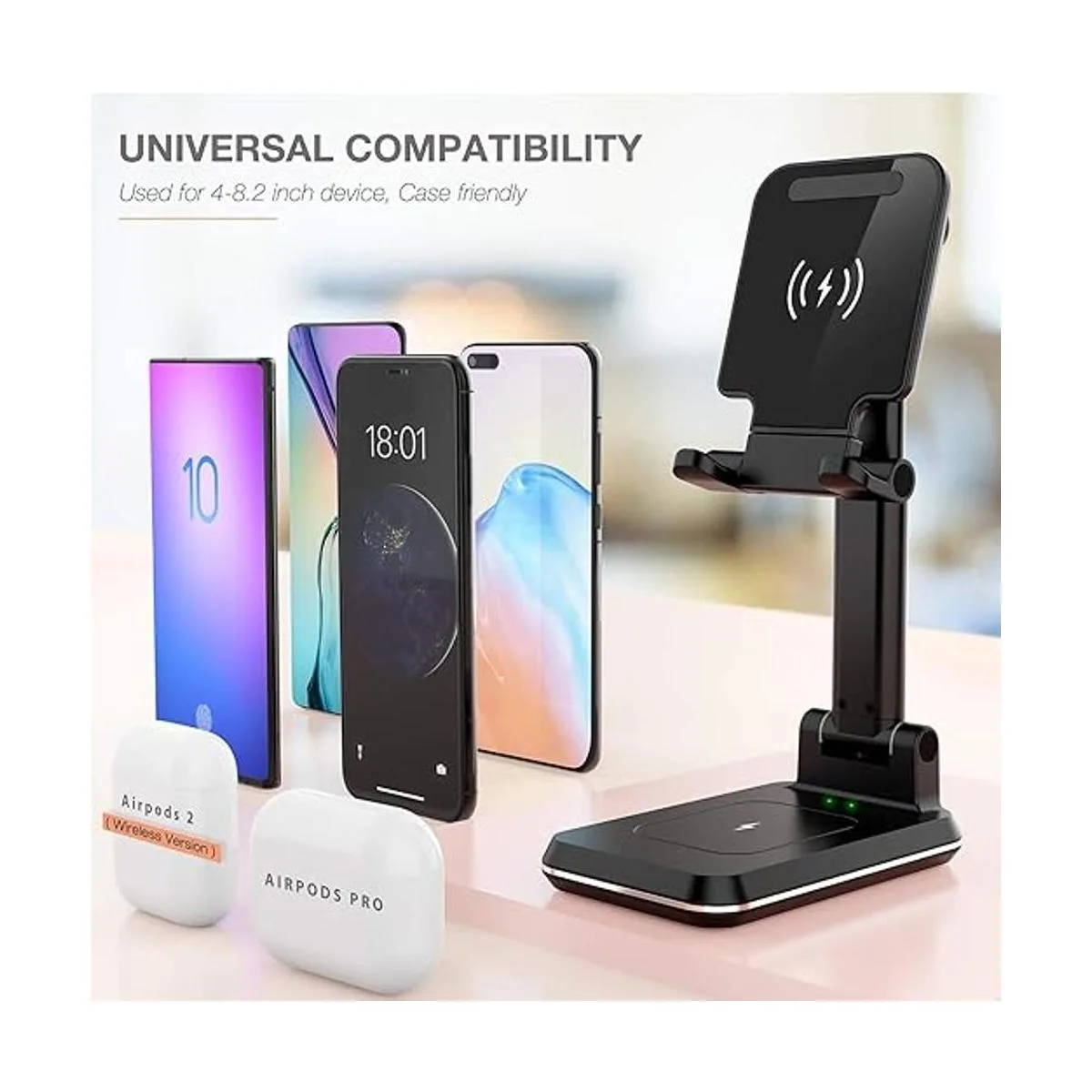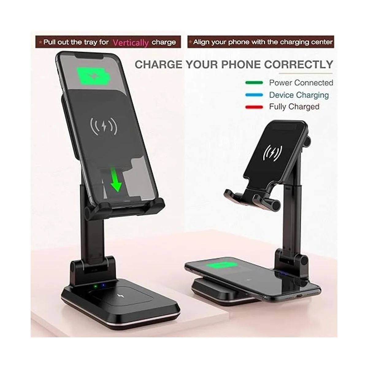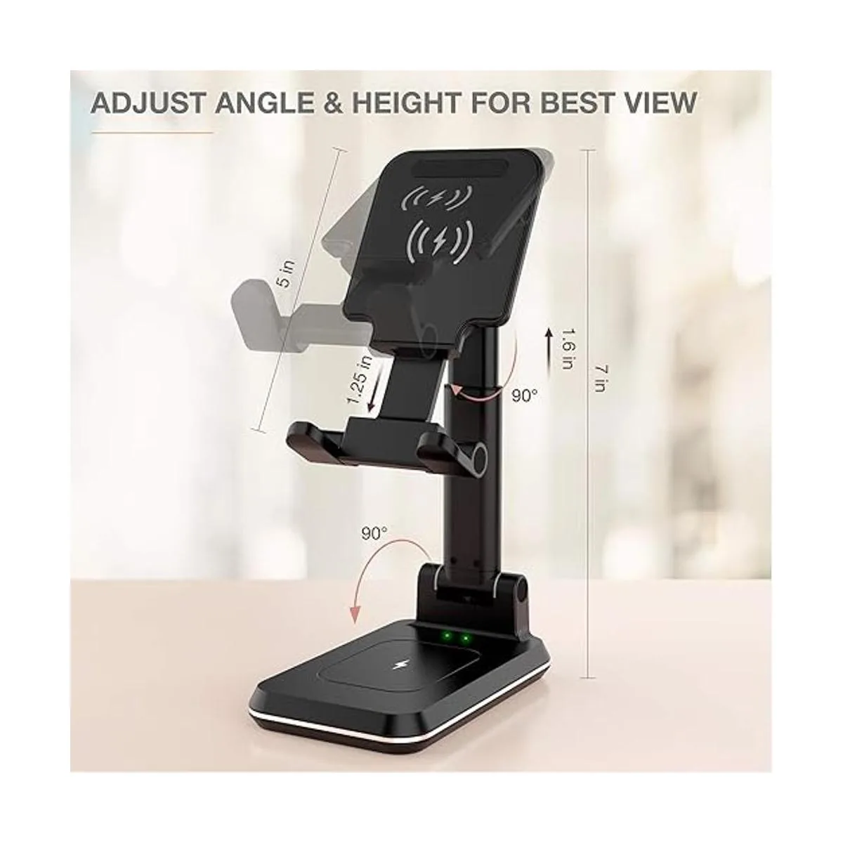 Altura y ángulo ajustable: este soporte de cargador inalámbrico con diseño de ajuste mejorado hace que sea un rango de inclinación de 90 y 7 pulgadas de altura ajustable, te proporciona un mejor ángulo de visión. El soporte también es plegable a un tamaño de bolsillo, excepto para el hogar y la oficina, te permite llevarlo a cualquier lugar, también una mejor opción de regalo.