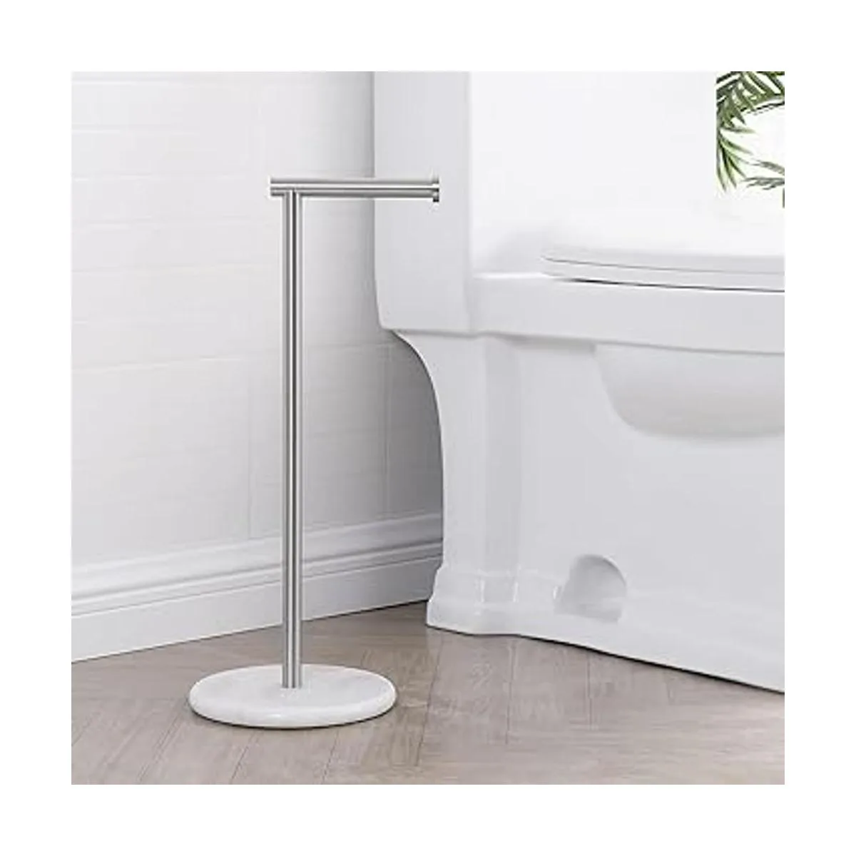 Freestanding Mount Type: Our roll holder is designed to be easily placed wherever you like in the bathroom, so you can keep the paper roll within reach. To install the toilet paper stand, you just need to fix the rod and the pedestal with a washer and screw. Note: Screw and washer are preinstalled. When installing, please ensure the recess in the center of the marble base is facing down, otherwise, the screw will not fit into the pedestal.