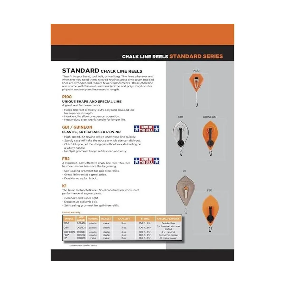 Keson P100 Carrete octoganal Chalk Line, cuerda de 0.059 in, capacidad de 24 onzas, 100 pies