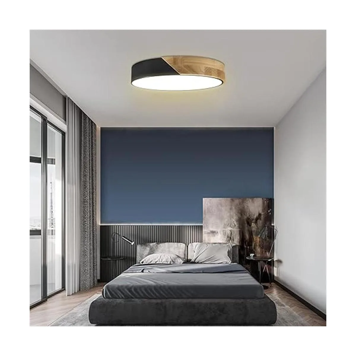 Material de alta calidad: lámpara de techo de 24 W sellada con pantalla acrílica, el cuerpo de la luz está hecho de hierro y decoración exterior con roble. La pantalla acrílica esmerilada hace que la luz sea incluso con un buen rendimiento de transmisión de luz.