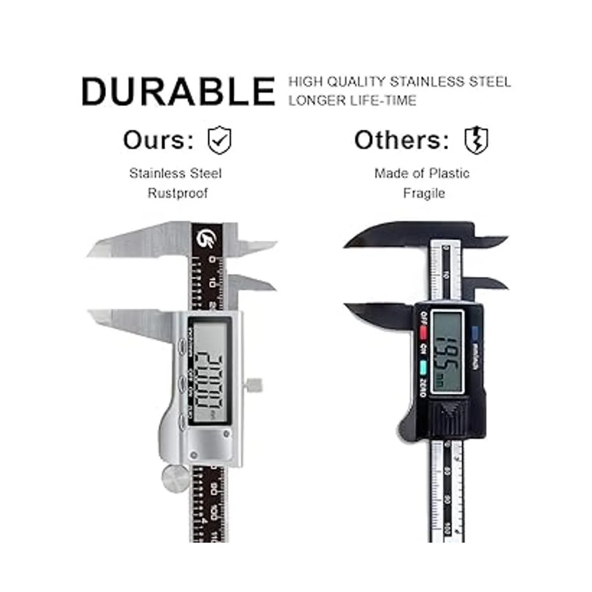 Fácil de usar: el calibrador digital de 6 pulgadas es fácil de usar, portátil, ligero y duradero. Tiene 4 tipos de medidas, internas, externas, profundidad y medidas de paso. Pantalla LCD de alta calidad y valor de escala claro y preciso, hace que sea fácil de leer.