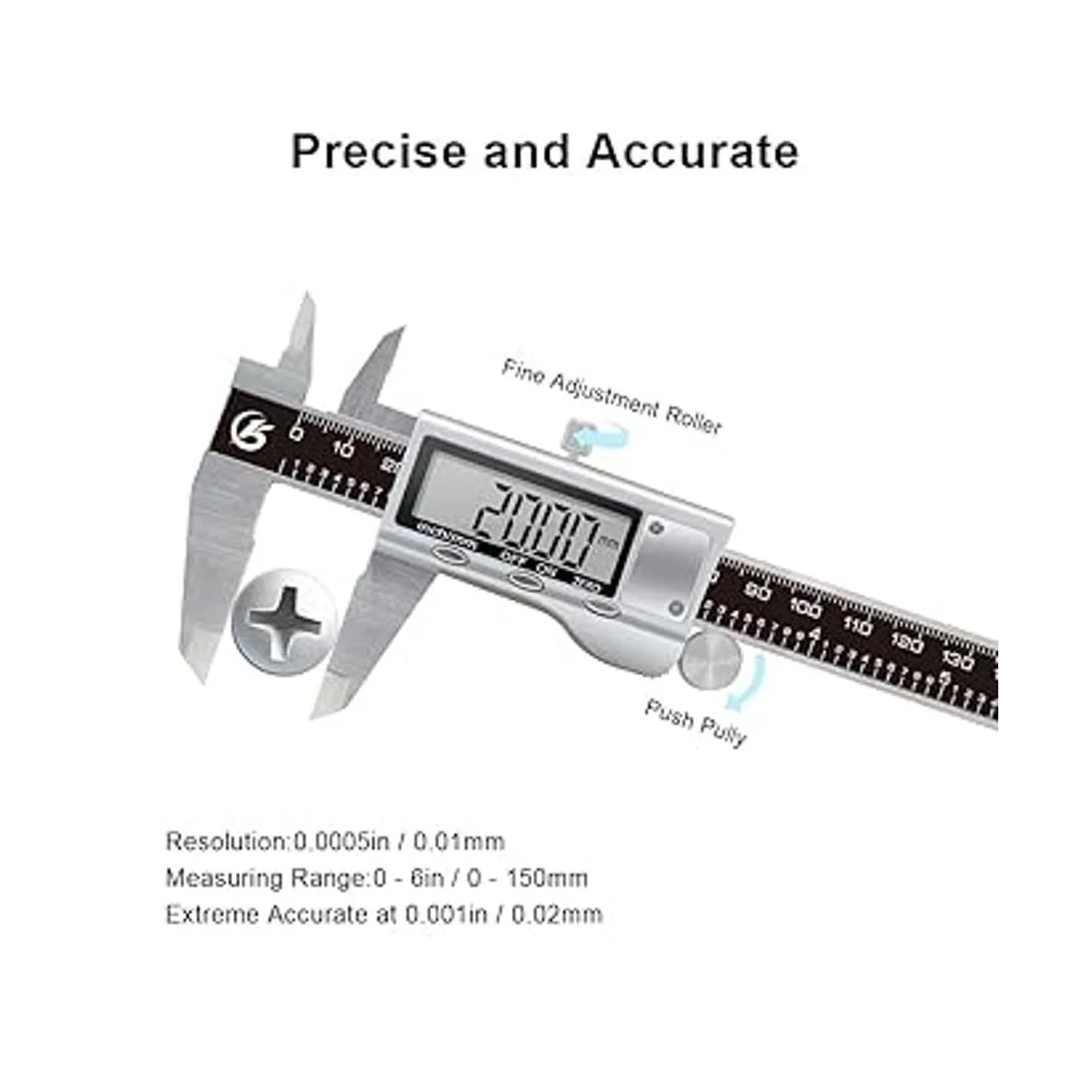 Preciso y preciso Rango de medición: 06 pulgadas / 0.0005.906 in; Resolución: 0.0005 pulgadas/0.000 in; Precisión: 0.0005 pulgadas/0.000 in. Paquete: 1 pinza digital batería instalada, 1 funda de plástico resistente, 1 destornillador pequeño, 1 batería para reemplazo, 1 manual de usuario idioma español no garantizado.
