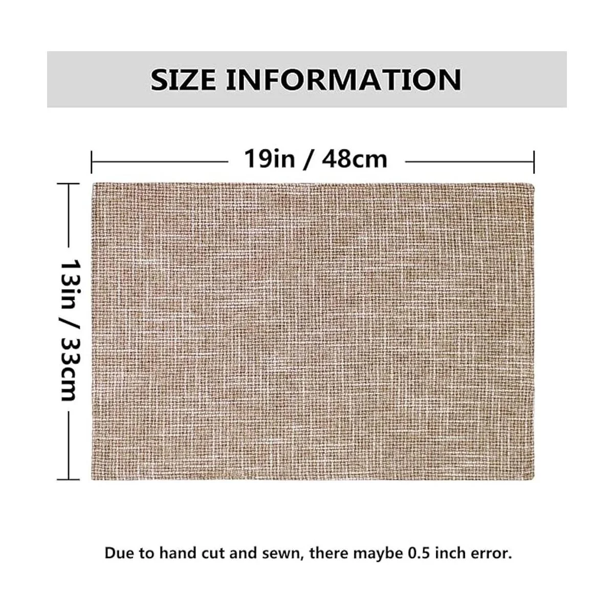 Tamaño: 13.0 in x 18.9 in, todos los manteles individuales están cortados y cosidos a mano y tal vez un error de 1 pulgada.