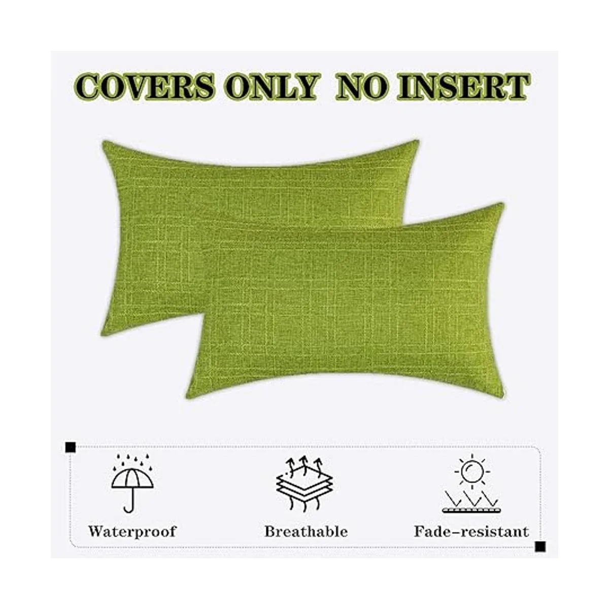 Kevin Textile Paquete de 2 fundas de almohada impermeables para exteriores, decorativas, cuadradas, a cuadros, para exteriores, para sofá, 12 x 20 pulgadas, 11.8 x 19.7 in, color verde