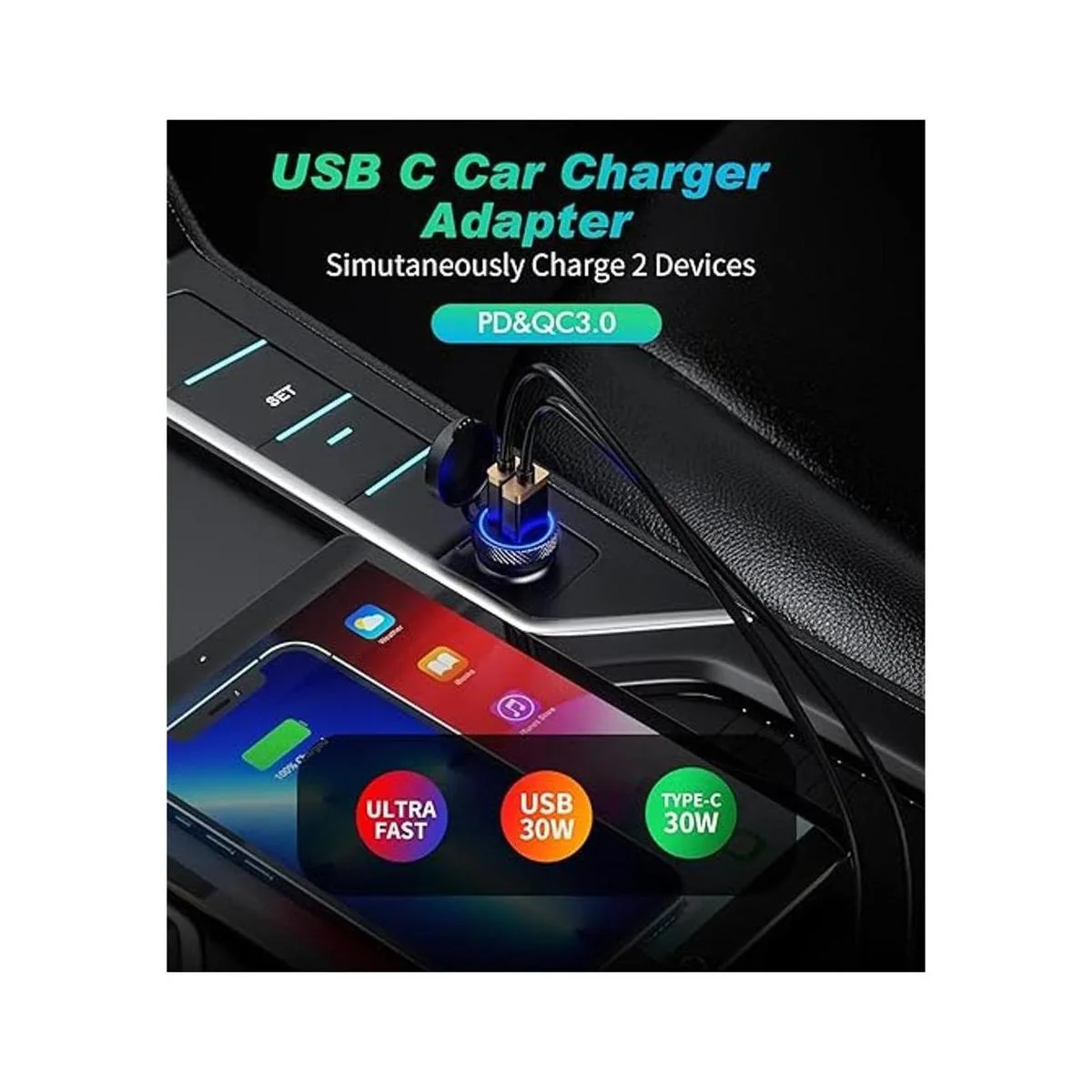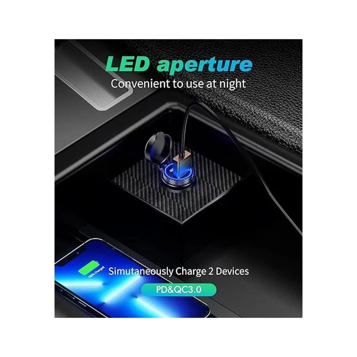 Salida de doble puerto: este cargador de coche con puertos de carga rápida duales QC3.0 y PD tipo C. Soporta carga rápida simultánea de dos dispositivos móviles.
