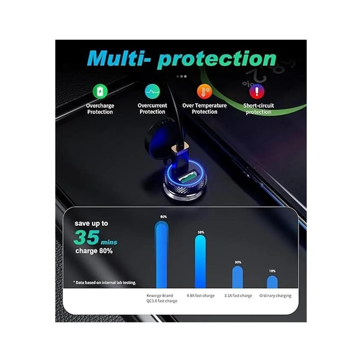 Cargador súper rápido: el cargador de coche súper rápido salida total de hasta 60 W máximo, cada puerto salida de hasta 30 W máximo. Ten en cuenta que algunos dispositivos móviles incluidos algunos teléfonos inteligentes no admiten la tecnología de carga rápida, este cargador de teléfono de coche se cargará a la velocidad máxima permitida por tus dispositivos.