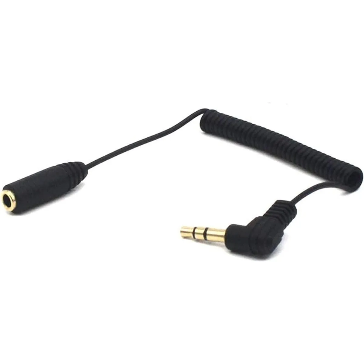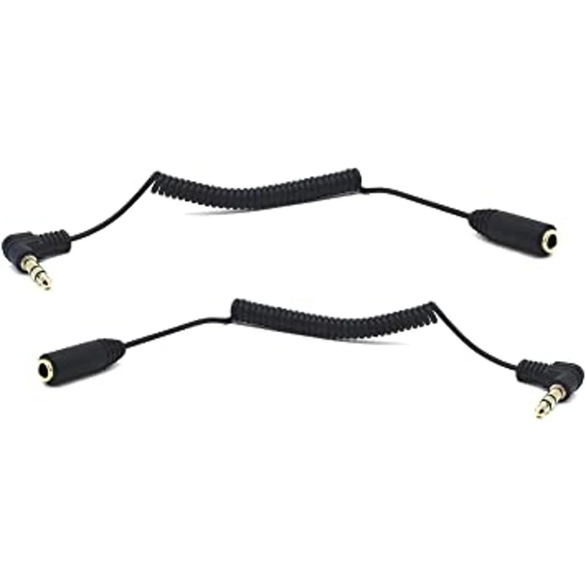 Kework Cable de audio de 0.138 in Paquete de 2 cables de auriculares de 11.8 in mini en espiral de 0.138 in, 90 grados, conector de 0.138 in TRS macho a macho, cable de audio estéreo en espiral Aux