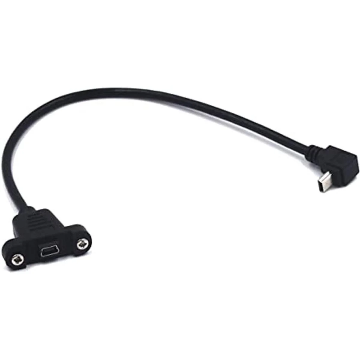 Kework Cable de extensión mini USB de 1.0 ft, ángulo ascendente de 90 grados, mini USB macho de 5 pines a mini USB hembra cable extensor de montaje de tornillo UpMini USB