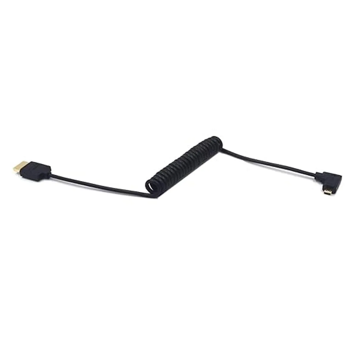 Kework Cable en espiral HDMI 4K de 4 pies, ángulo izquierdo de 90 grados, cable en espiral adaptador micro HDMI macho a HDMI macho, versión HD HDMI 2.0, cable de resorte de alta velocidad, 4K 60Hz Micro HDMI izquierdo a HDMI