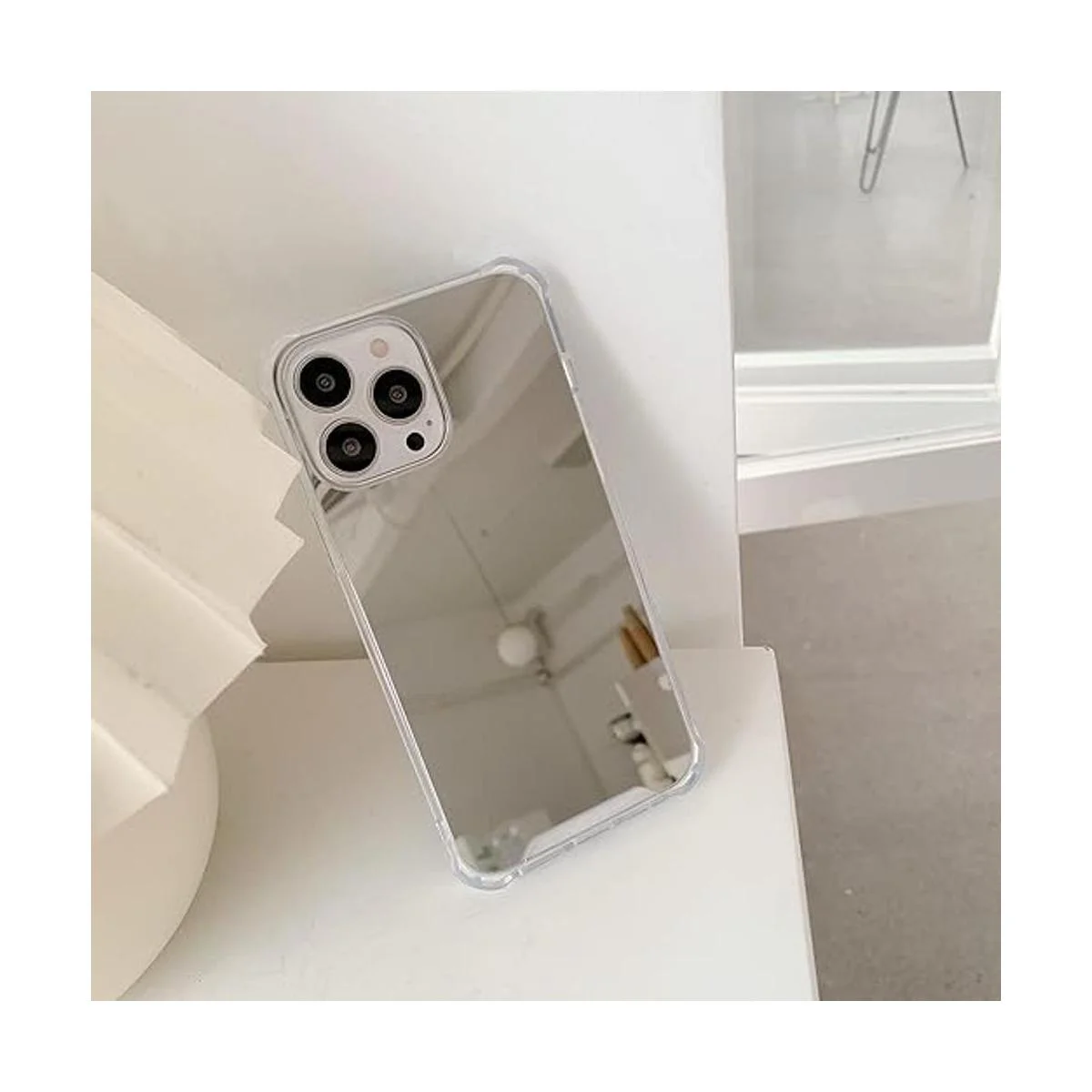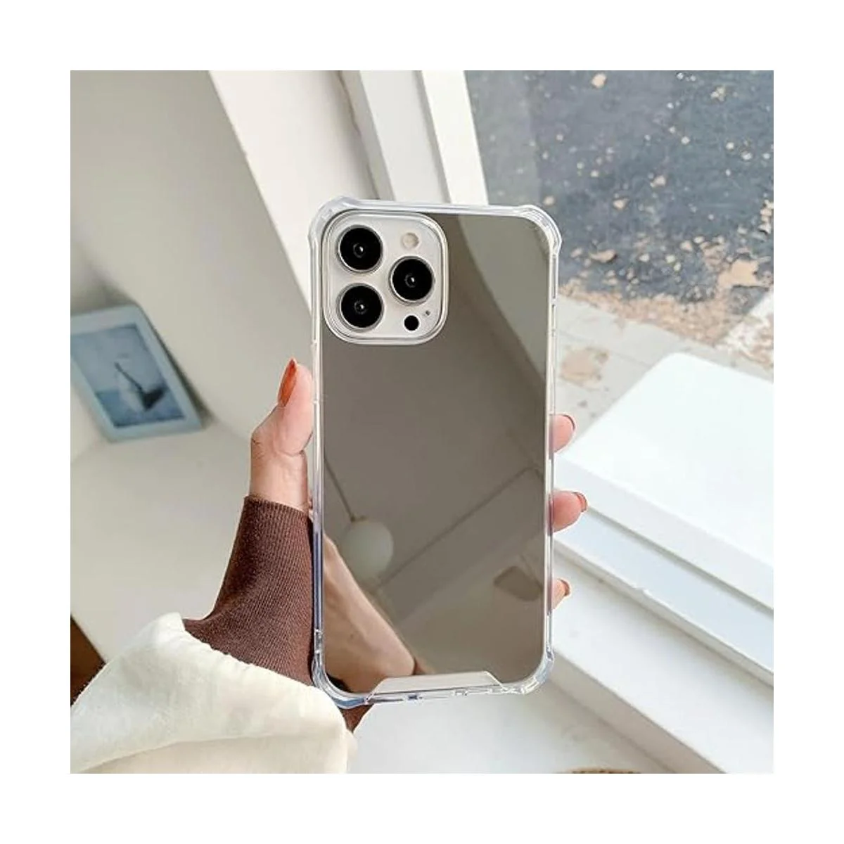 Parte trasera de espejo: con espejo de TPU marco de parachoques de TPU suave que te da una gran protección y esta funda es resistente a los arañazos, ideal para tomar selfies de cámara trasera y maquillaje. este producto viene con una película protectora que necesitas quitar antes de usar la funda.