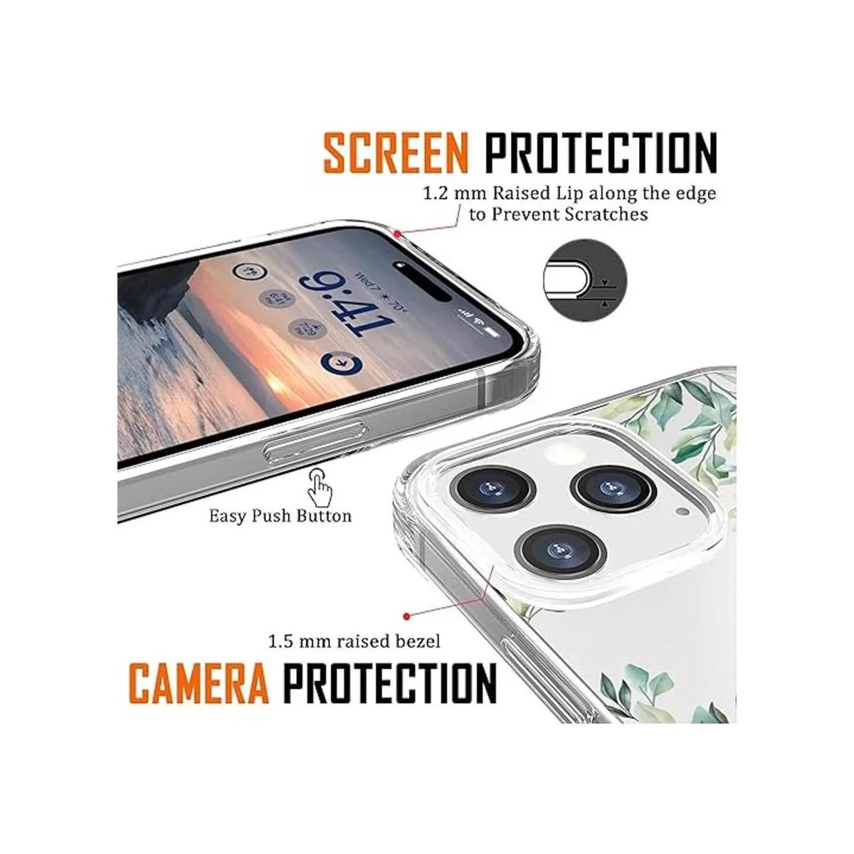 Protección de cámara y pantalla: el borde elevado de la cámara y el borde elevado de la pantalla mantienen los arañazos lejos de superficies planas.