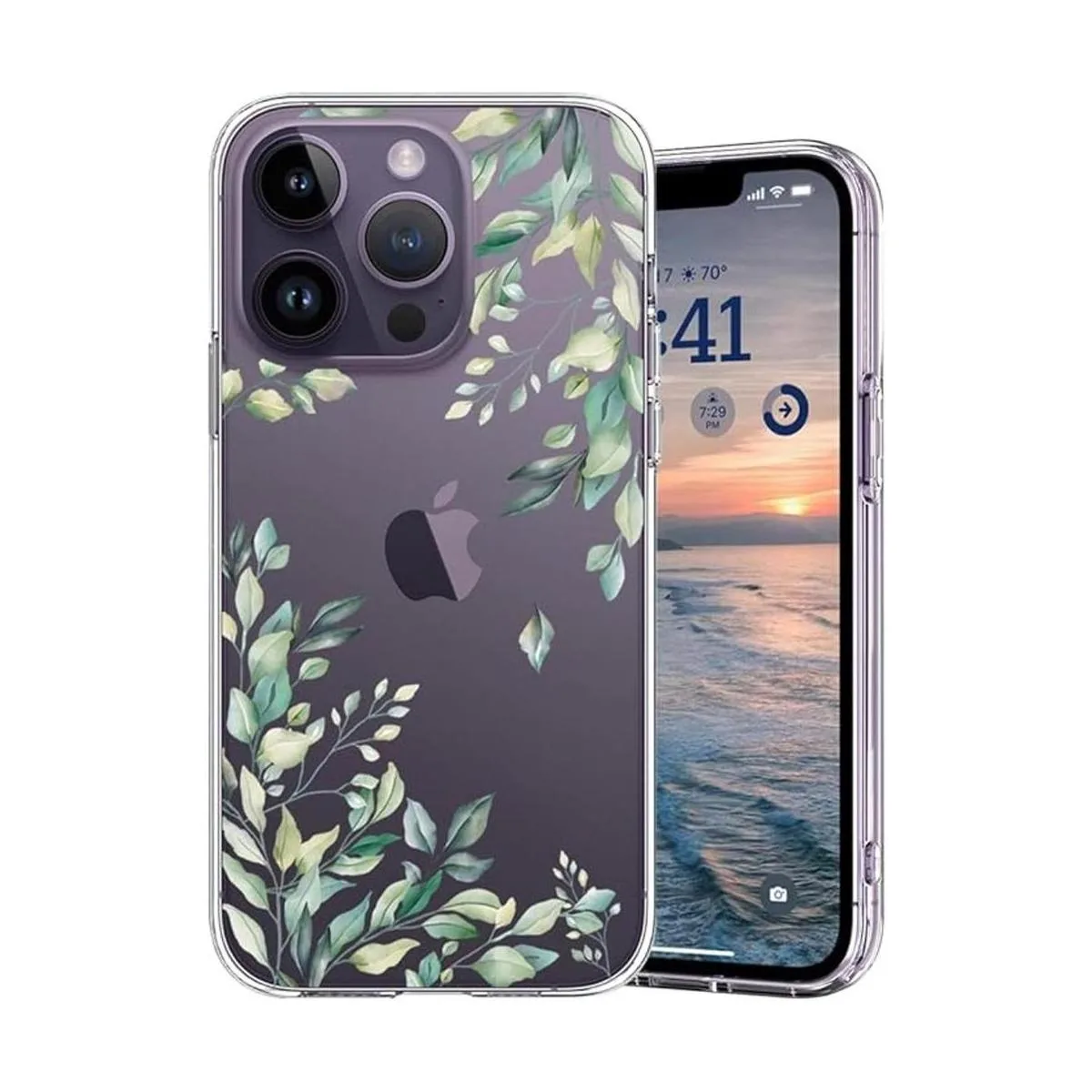 KEXAAR Funda para iPhone 14 Pro, funda para iPhone 14 Pro linda con flores para niñas y mujeres, árbol verde, hojas de otoño, patrón floral, parte trasera dura, suave, parachoques a prueba de golpes, funda para teléfono hojas 14Pro