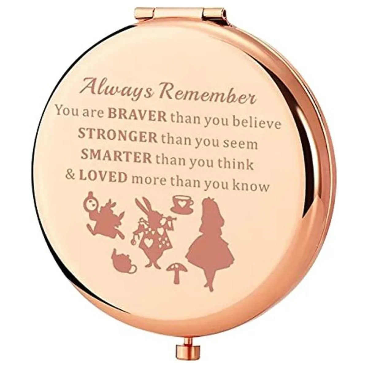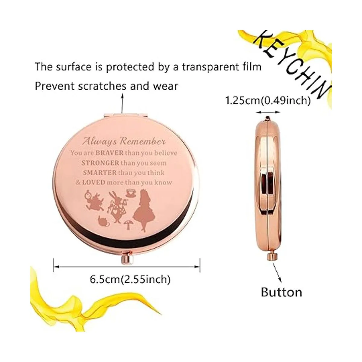KEYCHIN Alice Fans Espejo de bolsillo de Alice Fairy Tales, regalo siempre recuerda que eres más fuerte y inteligente de lo que piensas, espejo de maquillaje compacto para mujeres, niñas, adolescentes espejo AliciaRG