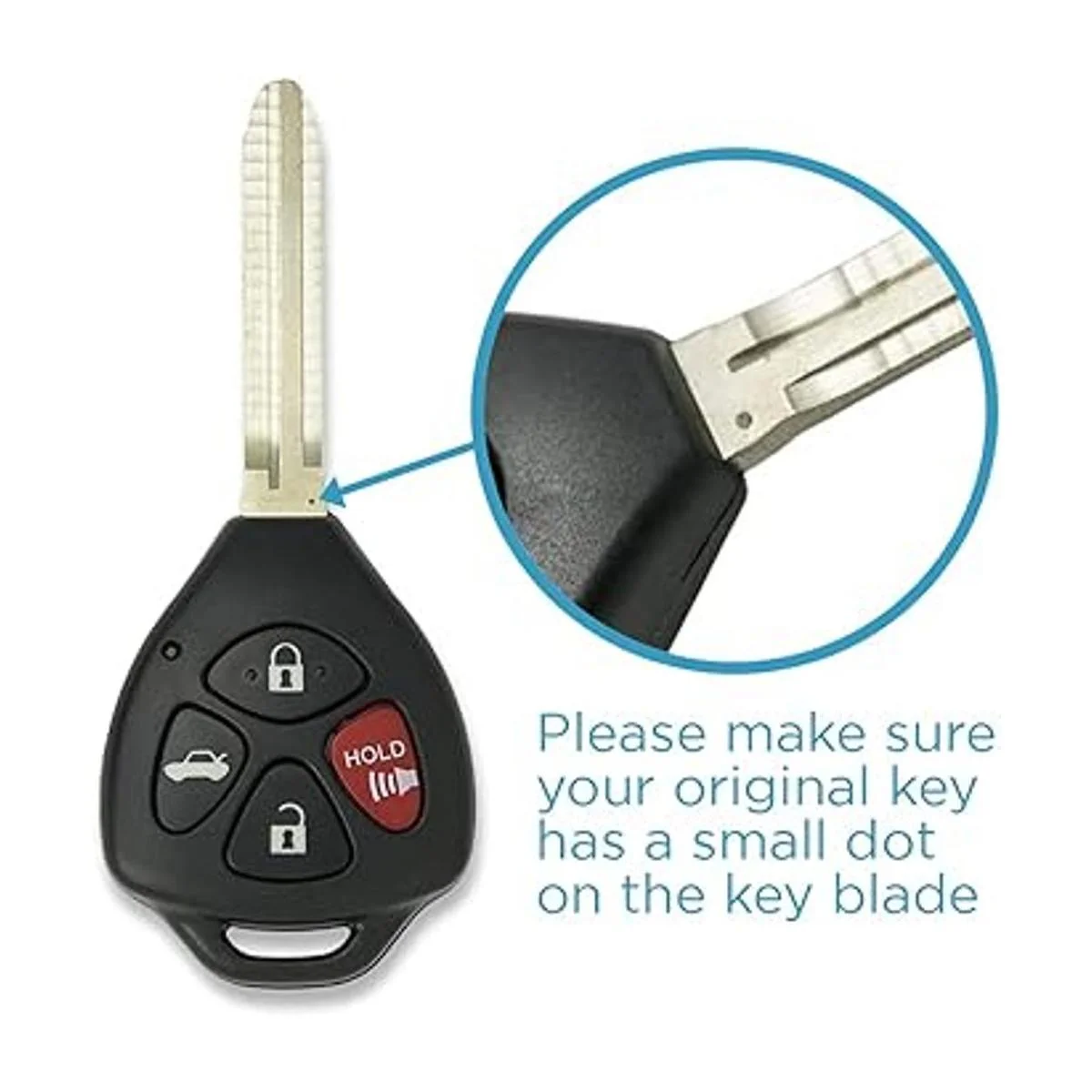 Este es un reemplazo de llave con transmisor a control remoto con hoja sin cortar para vehículos Toyota. Consulta la descripción del producto para ver si es compatible con tu vehículo.