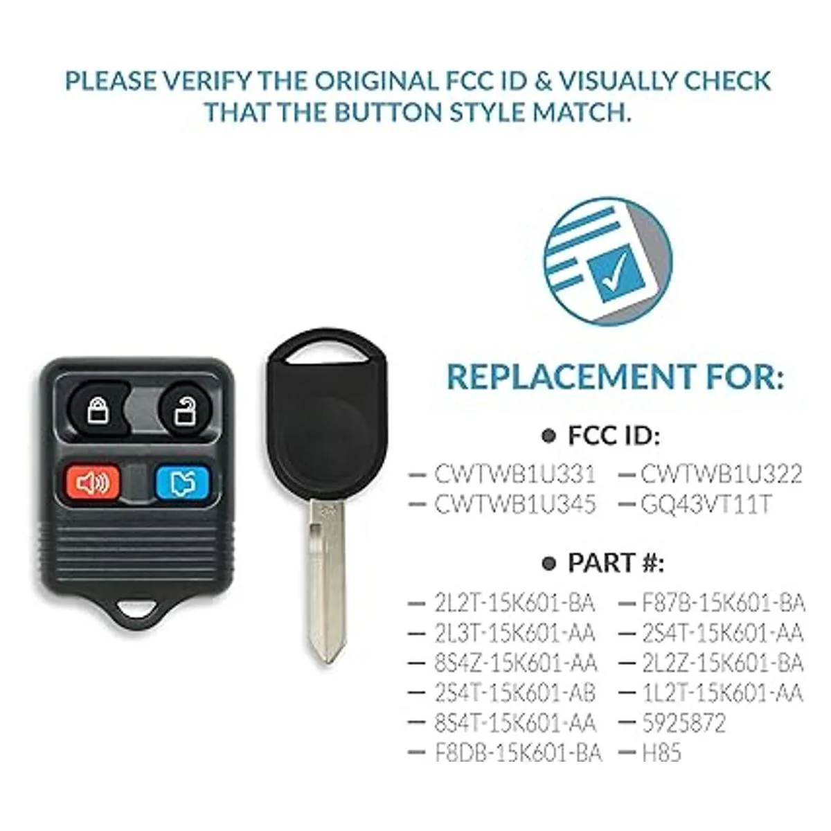 Compatible con un ID FCC: CWTWB1U311, para una lista completa completa, por favor revise nuestra descripción del producto. Este llavero de repuesto viene con pilas, está totalmente instalado y está preprobado para garantizar la calidad y una excelente funcionalidad de rendimiento. Este llavero de repuesto es compatible con una selección de vehículos, puedes comprobar la herramienta de ajuste del vehículo arriba y la descripción para una coincidencia exacta.