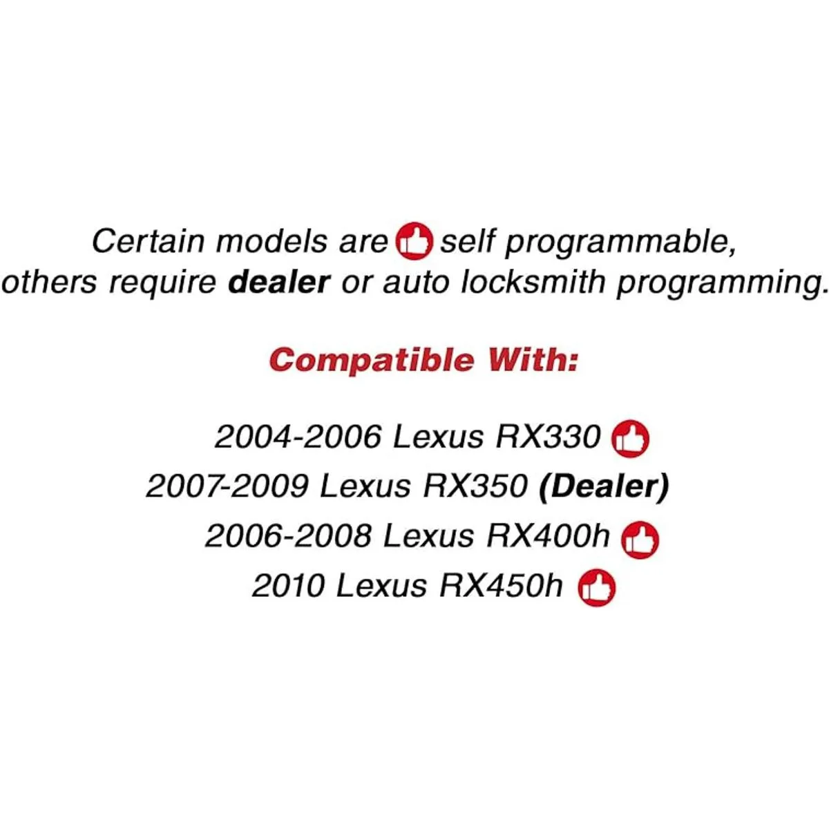 KeylessOption Hoja de llave de encendido sin llave para Lexus RX330 RX350 RX400h RX450h, HYQ12BBT Paquete de 2