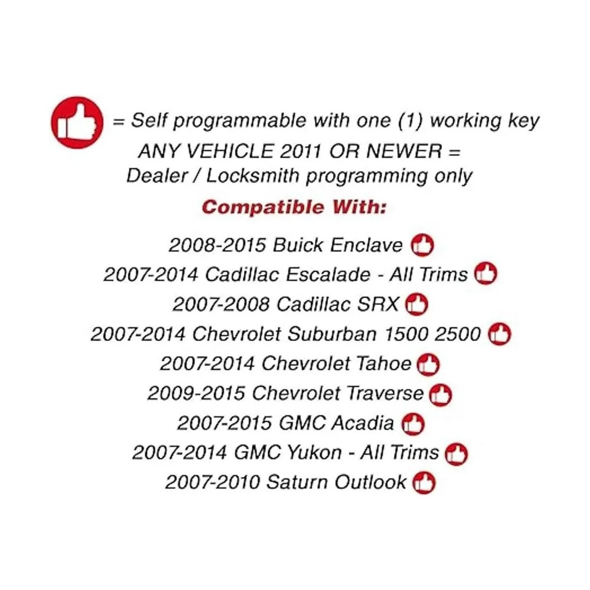 Instrucciones de autoprogramación paso a paso incluidas idioma español no garantizado. Los vehículos 2011 y superiores requieren programación de distribuidor o cerrajero solo