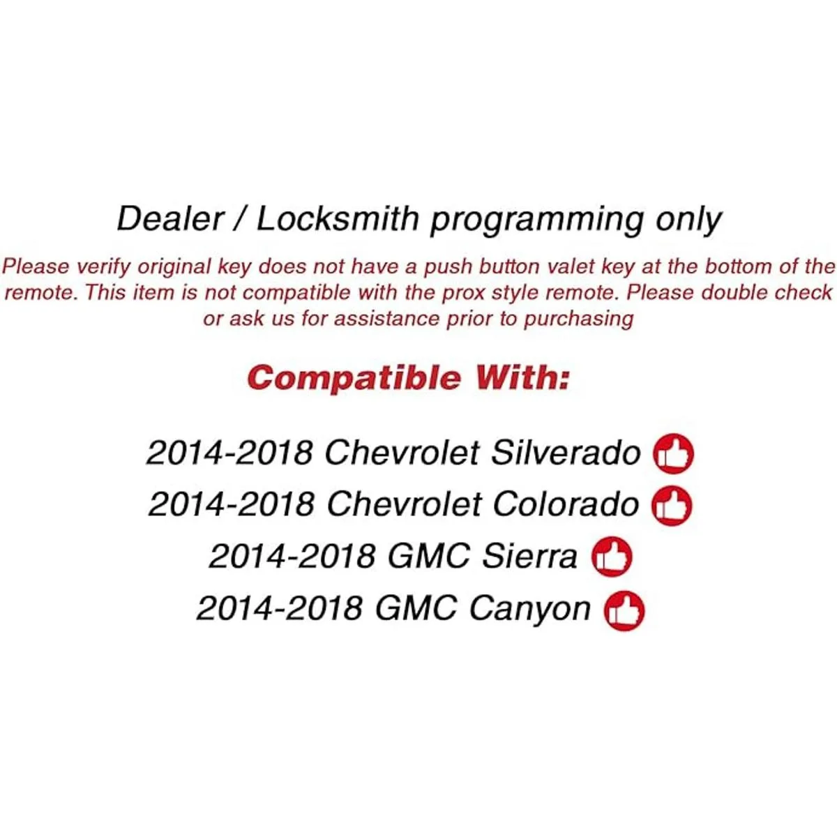 KeylessOption Mando a distancia para entrada sin llave de coche para Chevy GMC M3N32337100 2 unidades