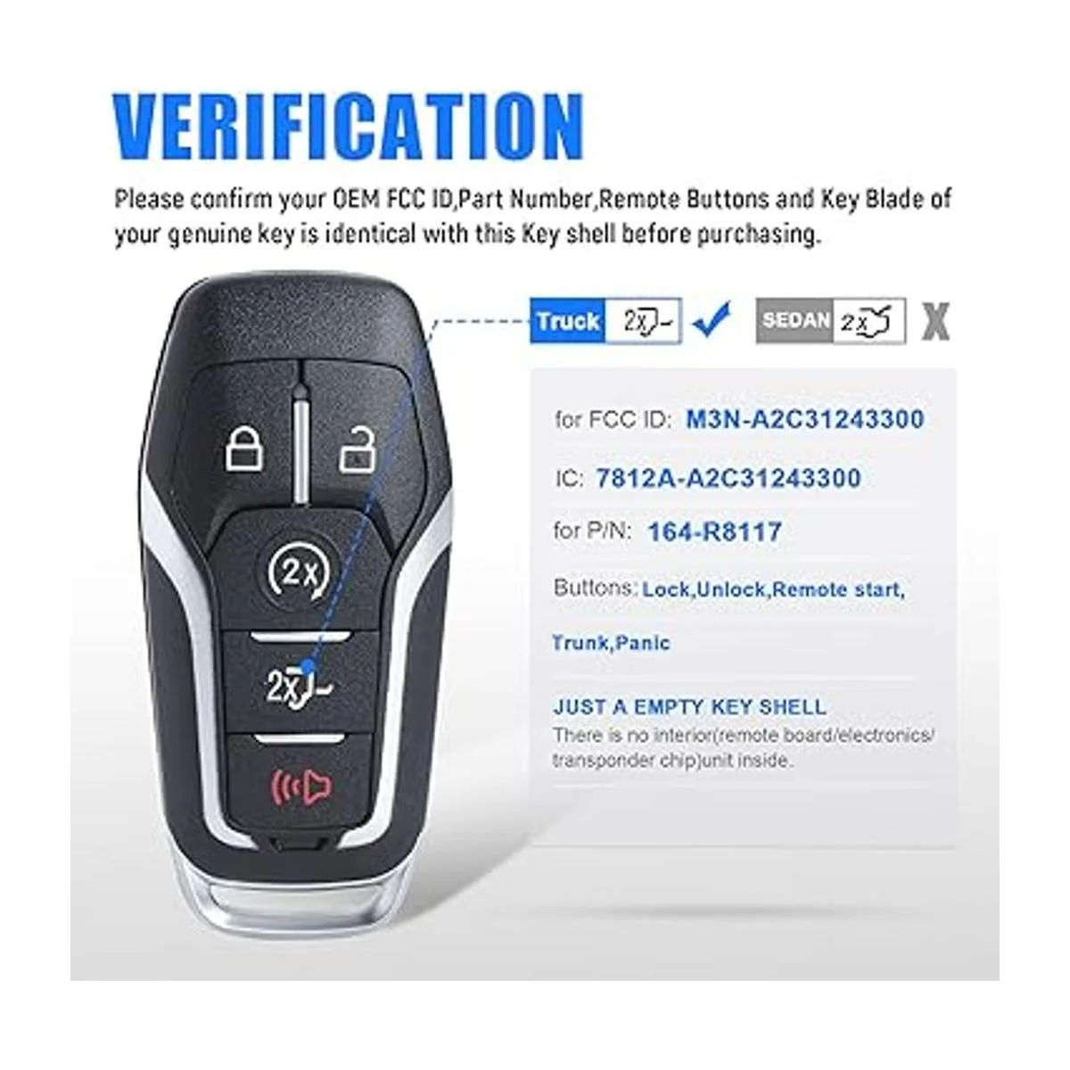 Keymall Carcasa para llavero remoto para Ford F150F250 2015 2016 2017 FCC ID M3NA2C31243300 PN 164R8117 5 botones, solo una carcasa de llave