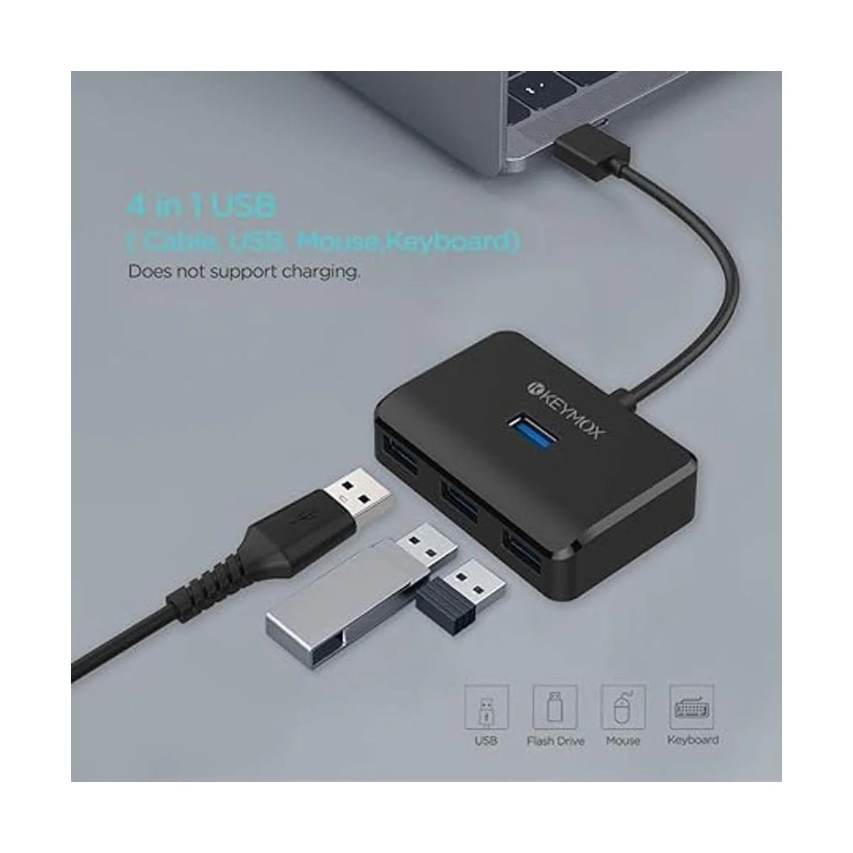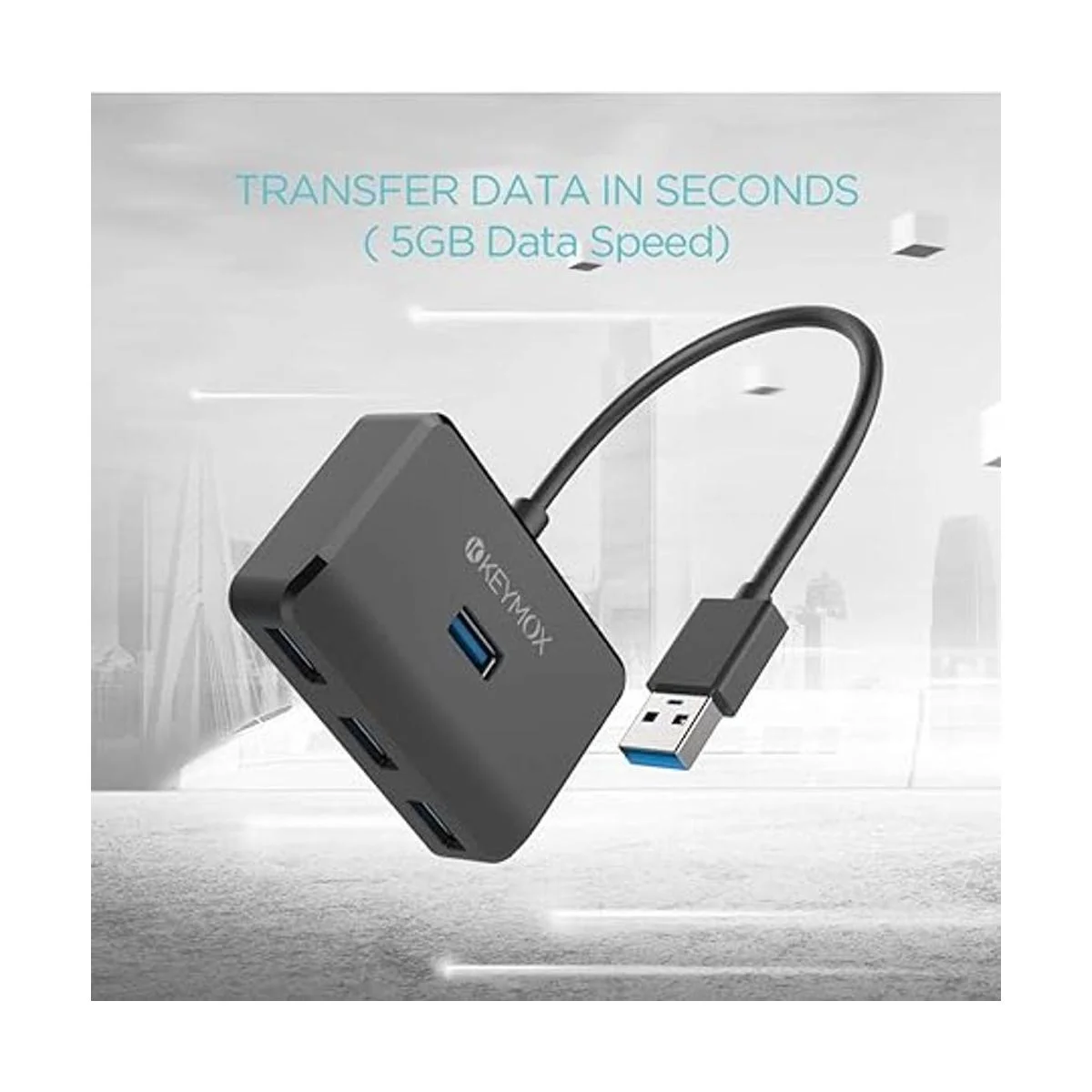KEYMOX Hub USB 3.0 de 4 puertos, concentrador USB de datos de tamaño compacto para MacBook, Mac Pro, Mac Mini, iMac, Surface Pro, XPS, PC, unidad flash, disco duro móvil carga no compatible, negro