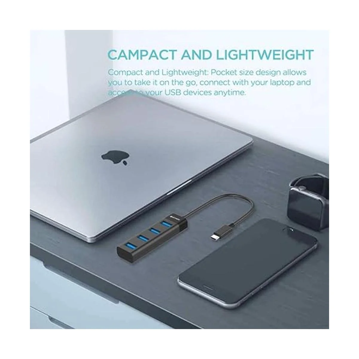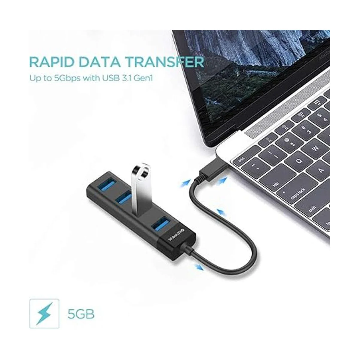 Datos supervelocidad: convierte un solo puerto USB C en cuatro puertos de datos USB 3.1 Gen 1 USB 3.0 con velocidades de transferencia de datos de hasta 5 Gbps, lo suficientemente rápidas como para transferir una película HD en cuestión de segundos