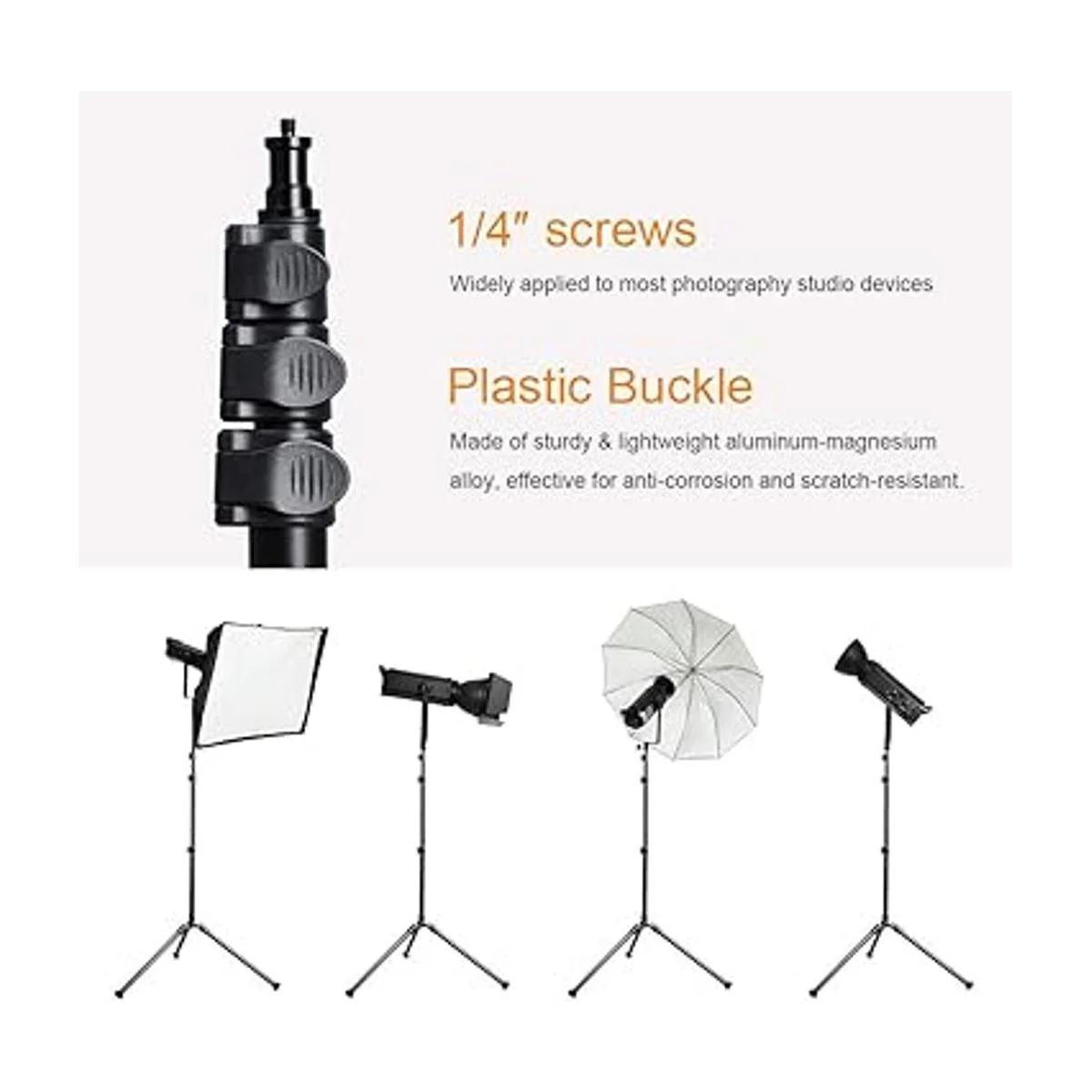 Compatibilidad: punta de tornillo de 1/4 pulgadas en el tallo, se pueden montar múltiples equipos de fotografía diferentes en este soporte de trípode, como reflector, caja de luz, diferentes luces, paraguas, fondo.