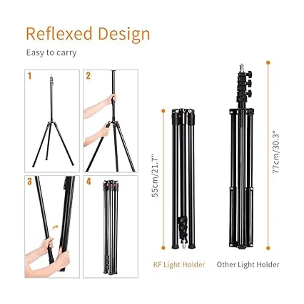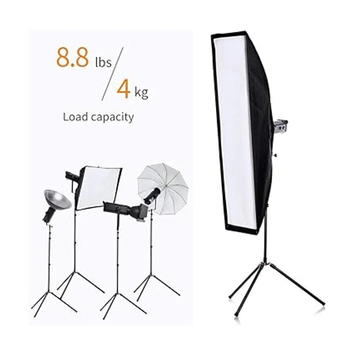 Flexible y útil: altura plegada: 1.8 pies; altura máxima: 7.21 pies; altura mínima: 1.96 pies; capacidad máxima de carga: 8.8 libras; peso neto: 1.95 libras. Diseño ligero, fácil de transportar de un lugar a otro, ajustable para muchas situaciones de iluminación. Perfecto para disparar macro.