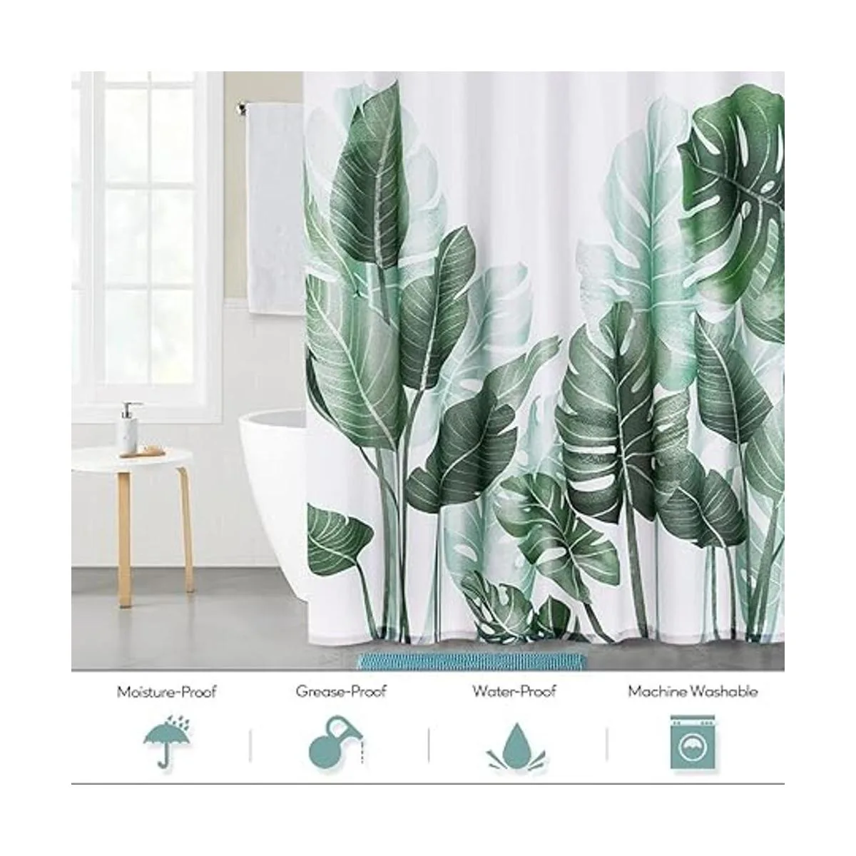 KGORGE Cortinas de ducha de baño, cortina de ducha impermeable con estampado de plantas tropicales, decoración de baño, cortina extralarga para tina, inodoro, hotel, spa, puerta francesa, 72 x 78 pulgadas de ancho, con ganchos