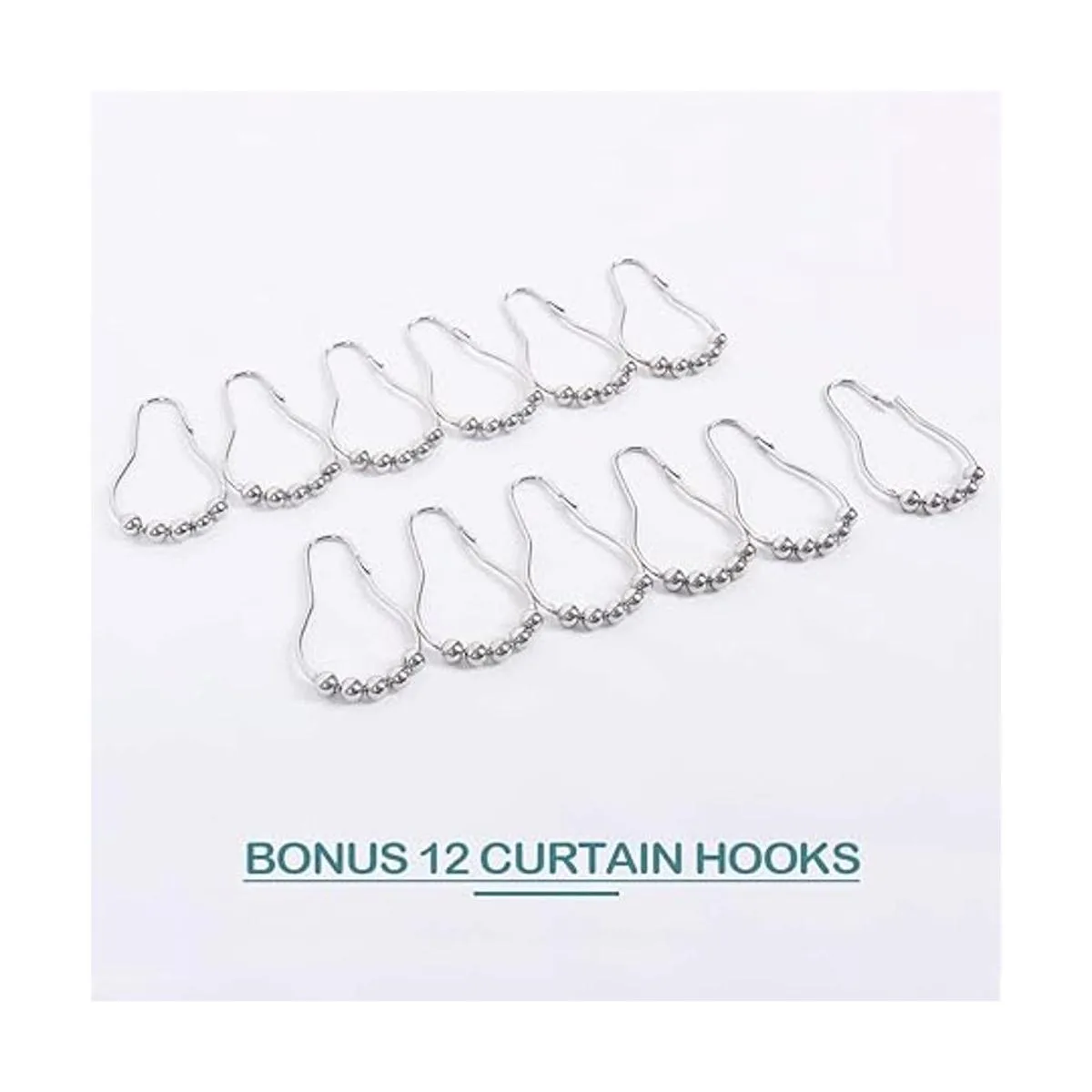 Incluye ganchos gratis y es fácil de instalar y deslizar. Cada cortina de ducha tiene 12 ojales de metal inoxidables, perfecto para el uso diario.